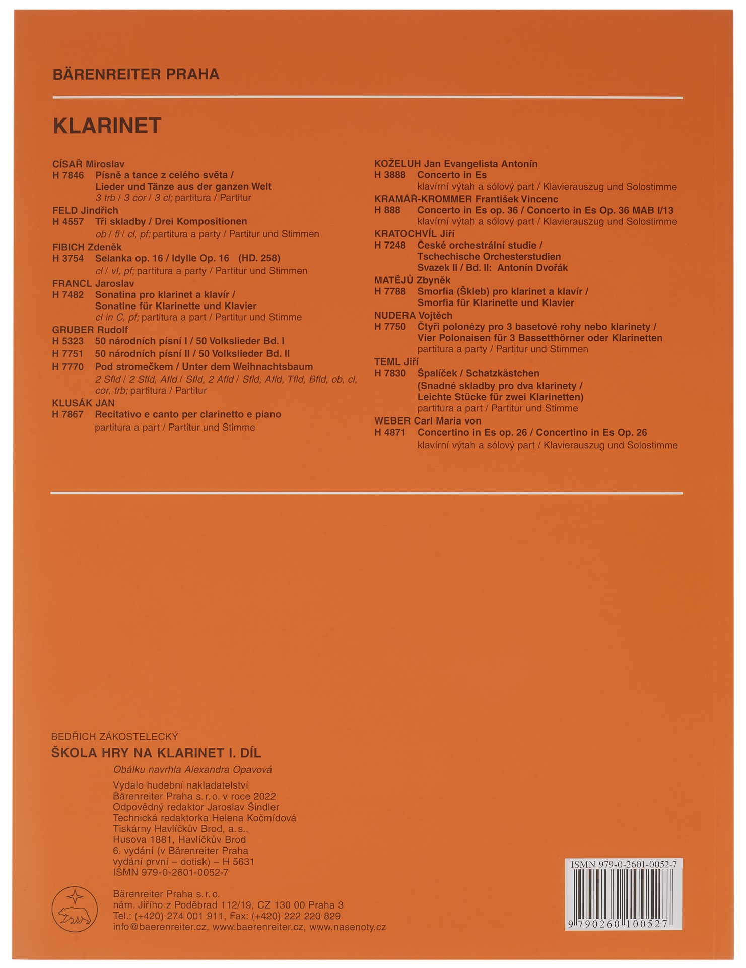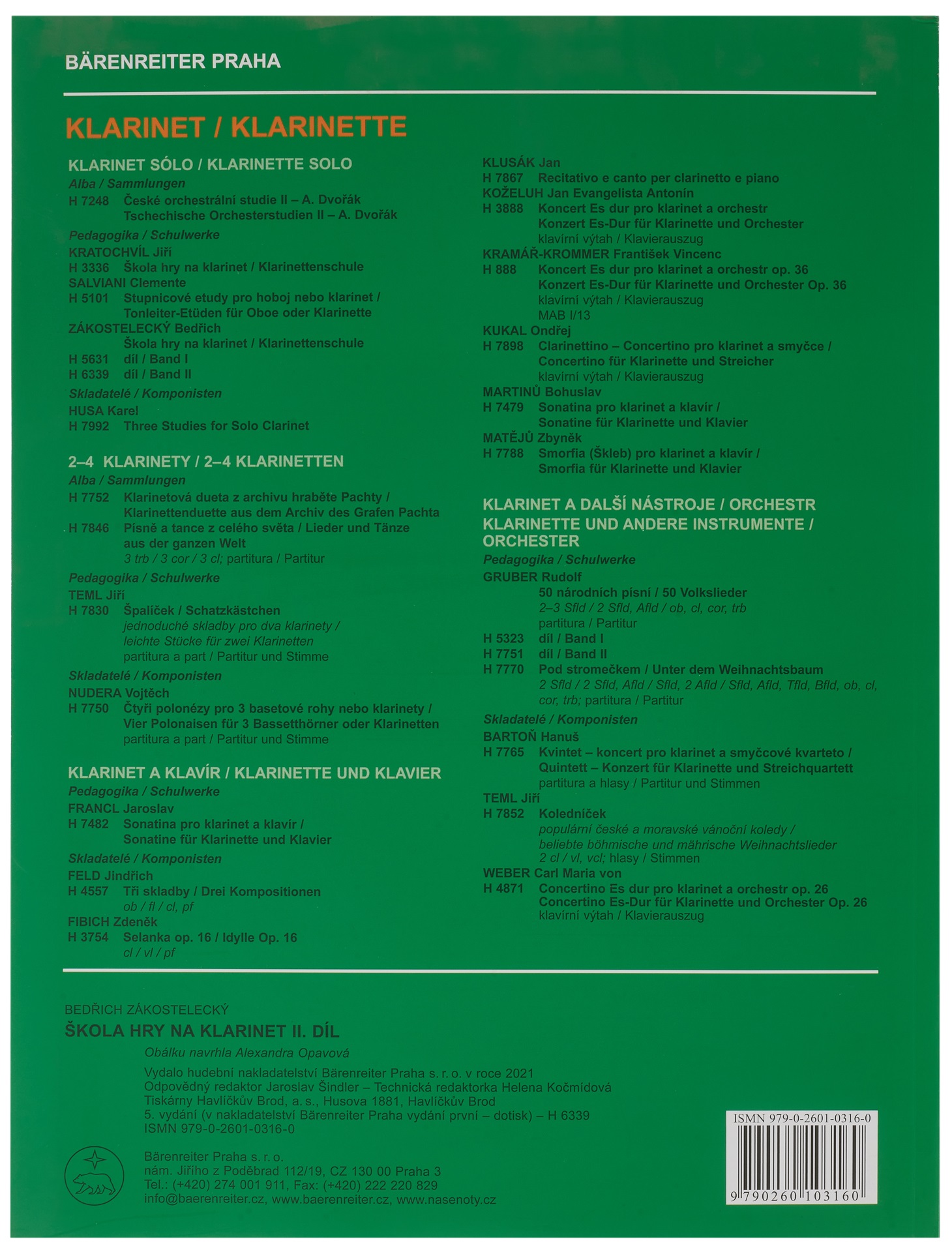Klarinet, Noty, Noty na dychové nástroje, Školy hry