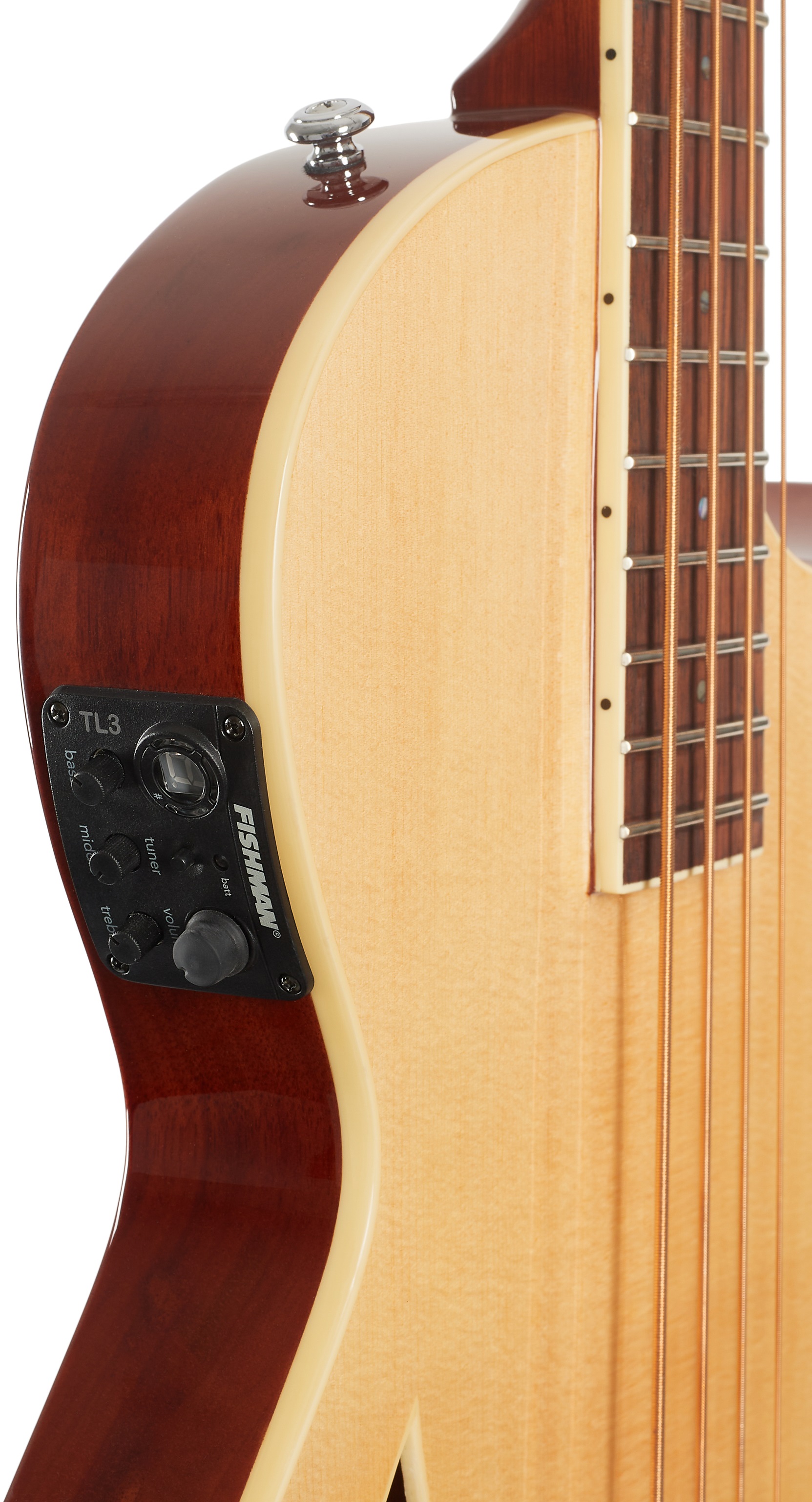 Elektrická basgitara Nástroje LTD zo série Thinline TL sú skvelou voľbou pre všetkých basgitaristov, ktorí vyžadujú akustický aj elektrický výkon. Ponúkajú vyložené mahagónové telo s dutinami, ktoré sú prekryté smrekovou vrchnou doskou s elegantnými výrezmi, a ponúkajú nádherne drevitý, ale dostatočne konkrétny zvuk. Do tela je vlepený trojdielny mahagónový lemovaný krk, na ktorom je osadený hmatník z jatoby. To všetko dopĺňajú kvalitné komponenty ako nultý pražec Nubone, mechaniky Grover a aktívny snímač F
