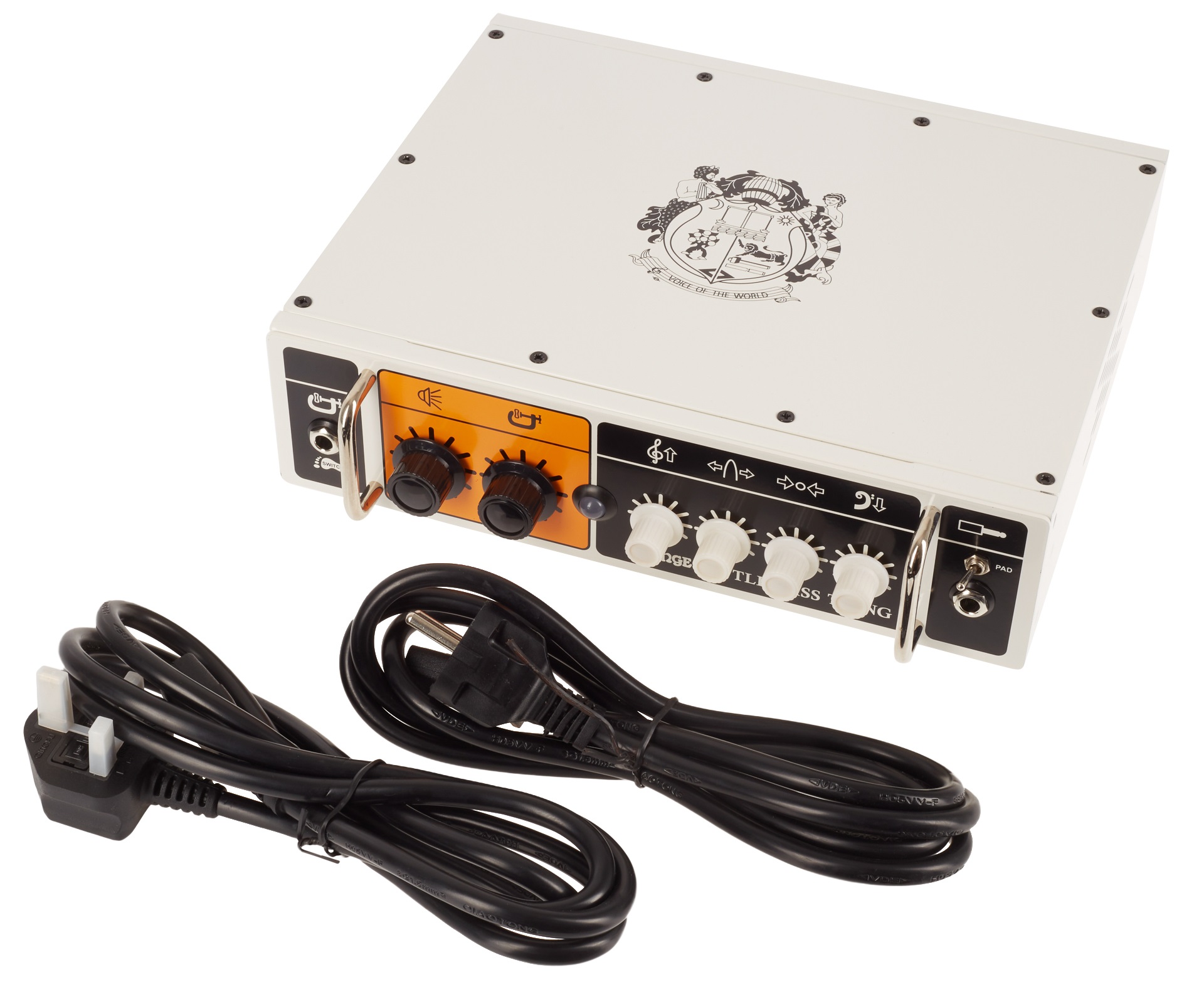 Basgitarový tranzistorový zosilňovač Ak hľadáte malý a šikovný zosilňovač, ktorý má obrovský výkon a skvelý zvuk, Little Bass Thing by rozhodne nemal uniknúť vašej pozornosti. Ako už jeho názov napovedá, ide o veľmi kompaktný zosilňovač, ktorý sa zameriava najmä na moderných hráčov. Napriek svojej hmotnosti, ktorá nepresahuje 3 kg, je však vybavený obrovským výkonom až 500 W, širokými zvukovými možnosťami a kvalitou, ktorou je legendárna značka Orange preslávená. Na prednom paneli nájdete pomerne jednoduché
