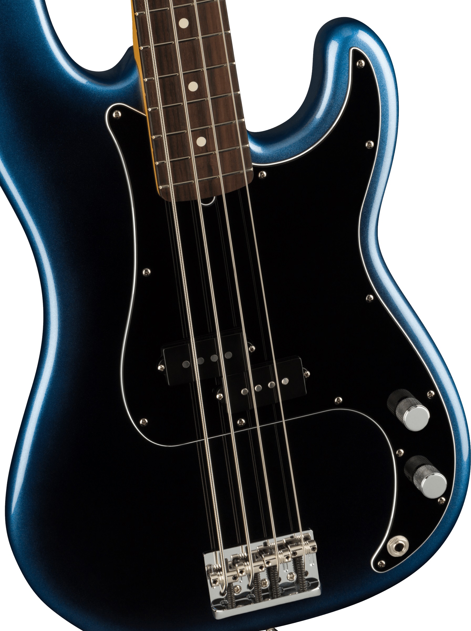 Elektrická basgitara Už viac ako 60 rokov je basgitara Fender Precision Bass absolútnou klasikou, ktorá prešla všetkými hudobnými žánrami. Model American Professional II sa inšpiruje týmito nástrojmi a posúva ich ešte ďalej, aby spĺňal požiadavky dnešných profesionálnych hráčov. Profil krku je rovnaký ako pri modeloch Precision Bass z roku 1963, pričom tento model má aj zabrúsené hrany hmatníka. Spolu s matnou povrchovou úpravou "Super Natural" a ergonomicky tvarovaným úchopom tela tak poskytuje veľmi pohod