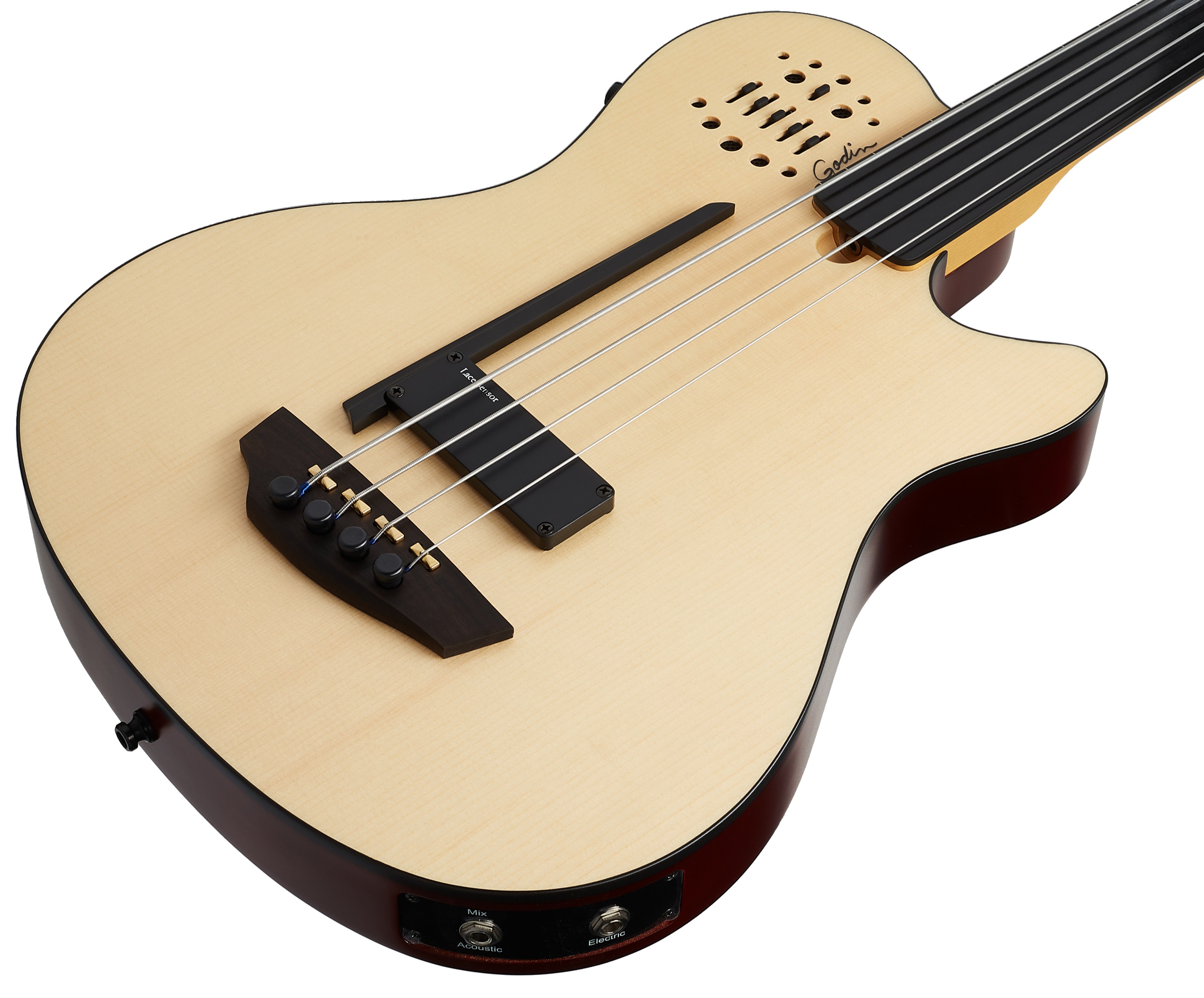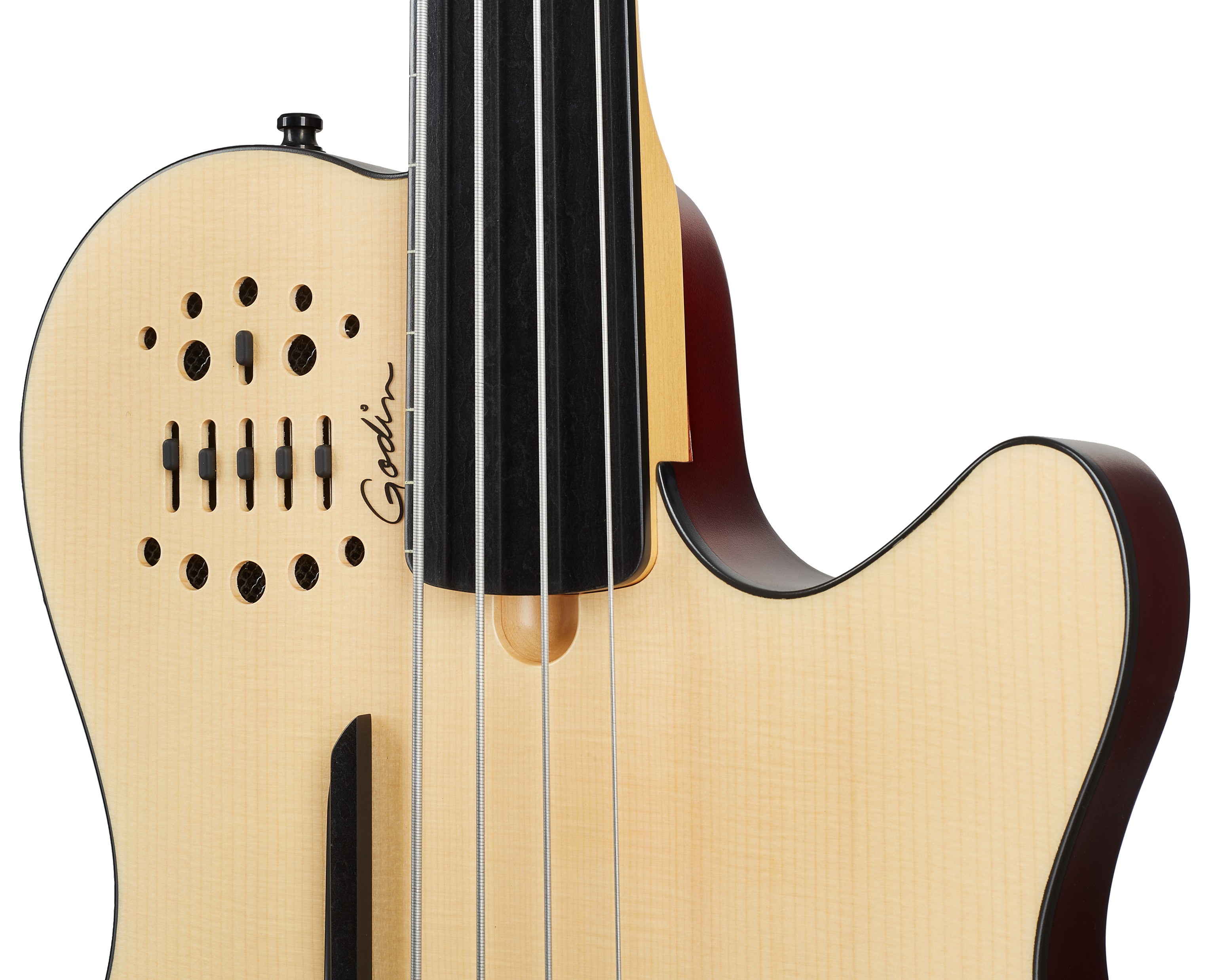 Hybridná bezpražcová basgitara Séria A ponúka nástroje, ktoré plne odrážajú filozofiu firmy Godin – ide o atypické modely hybridných elektroakustických nástrojov s neobvyklými zvukovými možnosťami a zaujímavým dizajnom. Výhodou týchto nástrojov je, že v sebe spájajú zvuk akustických gitár alebo basgitár, komfort hry na elektrické nástroje a často aj oveľa viac. A ako je u značky Godin zvykom, samozrejmosťou je precízne spracovanie, použitie kvalitných materiálov a skvelý zvuk. Telo tohto nástroja je vyroben