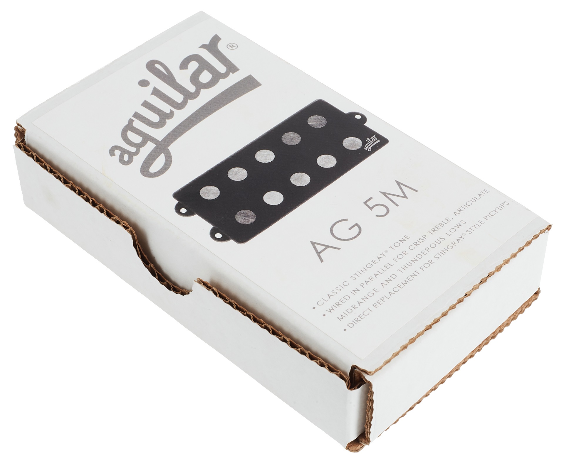 Snímač na elektrickú basgitaru AG 5M ponúka tón klasickej basgitary Stingray obohatený o charakteristické vlastnosti snímačov Aguilar, ako sú bohaté harmonické frekvencie a dokonale vyvážený pomer strún a tónu vo všetkých polohách. Paralelné vinutie zároveň prináša iskrivé výšky, čisté stredy a prierazné basy. AG 5M je skvelou náhradou za snímače na basgitarách Music Man s rozstupom strún 18 až 19 mm.