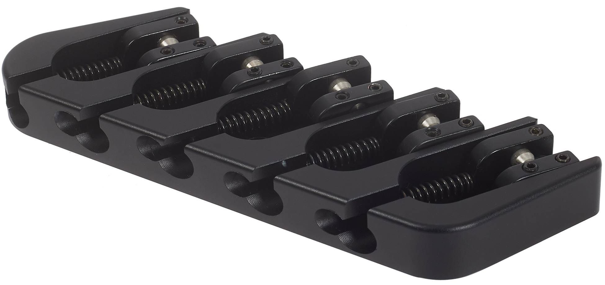 Kobylka Basgitarový mostík Payson Fanned Multi-Scale Bridge sa vyznačuje premysleným dizajnom a precíznym spracovaním, vďaka čomu prináša basgitaristom jedinečnú 3D nastaviteľnú vzdialenosť strún pre výnimočný komfort a flexibilitu pri hraní. Tento mostík je vyrobený z ľahkého hliníka T6061 a vyznačuje sa unikátnou "stupňovitou" konštrukciou dosky, ktorá kopíruje rádius krku nástroja, optimalizuje geometriu a prispieva k pohodliu a jednoduchej hrateľnosti. Na dosiahnutie čo najpresnejšej intonácie sledujú o