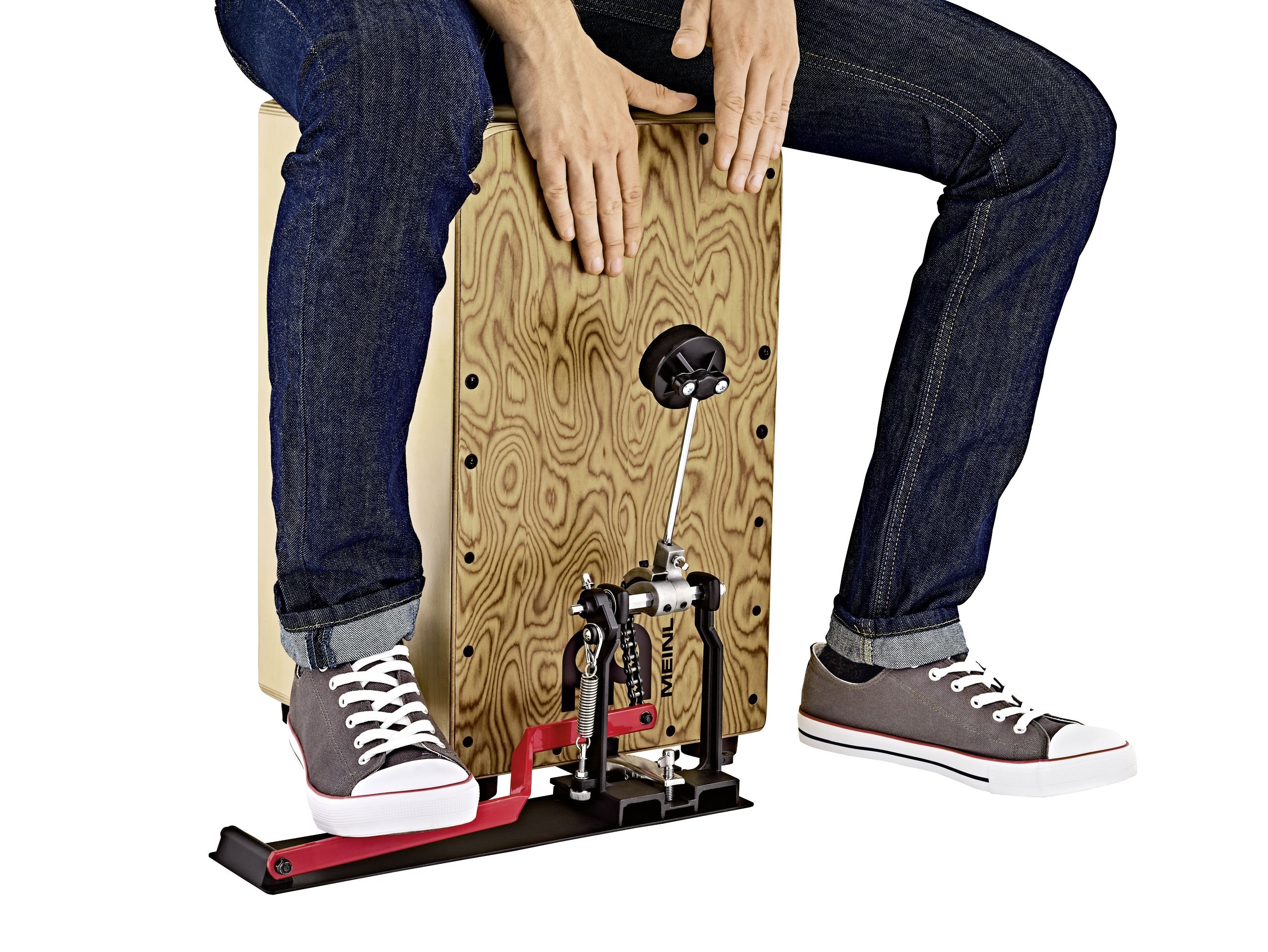 Pedál ku cajonu Spoločnosť Meinl má vo výrobe cajónov dlhoročnú tradíciu, ktorú naplno využila pri výrobe tohto pedálu. Ponúka priamy prevodový mechanizmus, a teda okamžitú odozvu, a vďaka dômyselne navrhnutej konštrukcii umožňuje použitie širokej škály techník hry. Je vyrobený z pevnej ocele a je veľmi odolný, na dosiahnutie basového rytmického zvuku sa používa mäkký penový beater. Pedál je možné pripojiť ku všetkým bežným typom cajónov a jeho výhodou je aj nastaviteľné napätie pružiny.