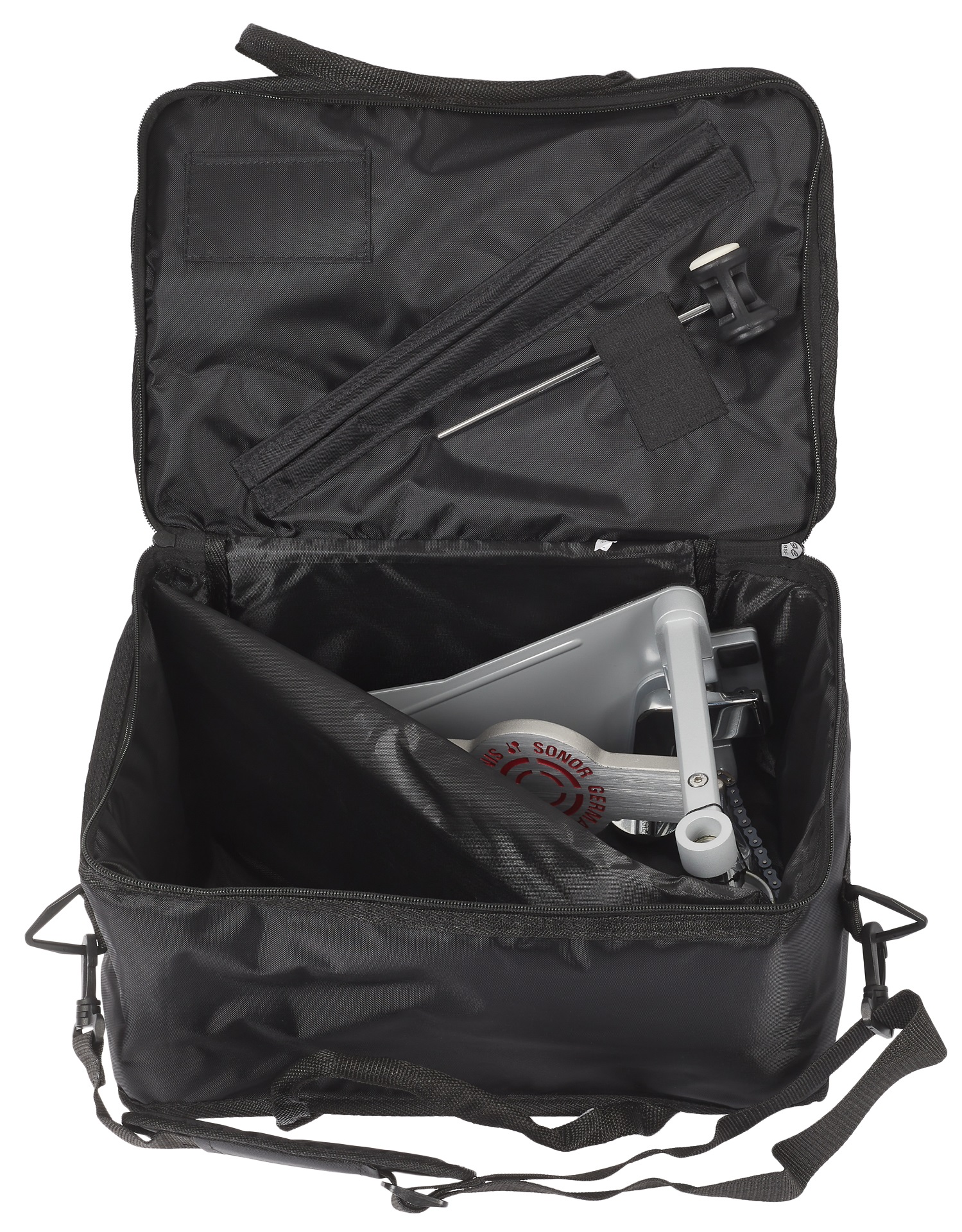 Pedál k basovému bubnu Dvojitý pedál Sonor série 4000 ponúka vylepšenú konštrukciu základne a pedálu, guľôčkové ložisko v pätovej doske alebo protišmykovú úpravu a vďaka dvojitému prevodu a obojstrannému beateru budete mať zvuk svojho kopáku vždy pod úplnou kontrolou. Odolná projekčná lišta bola prevzatá zo série Giant Step. K pedálu dostanete aj praktické puzdro.