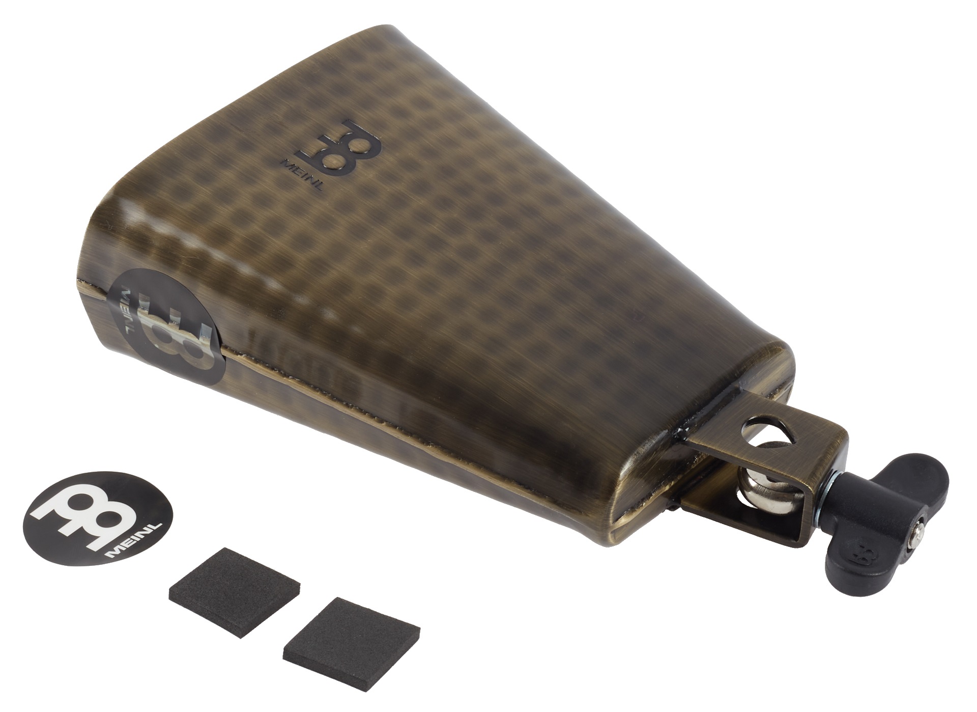 Cowbell Spoločnosť Meinl ponúka zvončeky vhodné na hranie v ruke alebo na umiestnenie do súpravy bicích nástrojov. Tento model je vyrobený z pozlátenej kladivkovej ocele pre čistý zvuk a jeho veľkosť zodpovedá 6,25 palca.