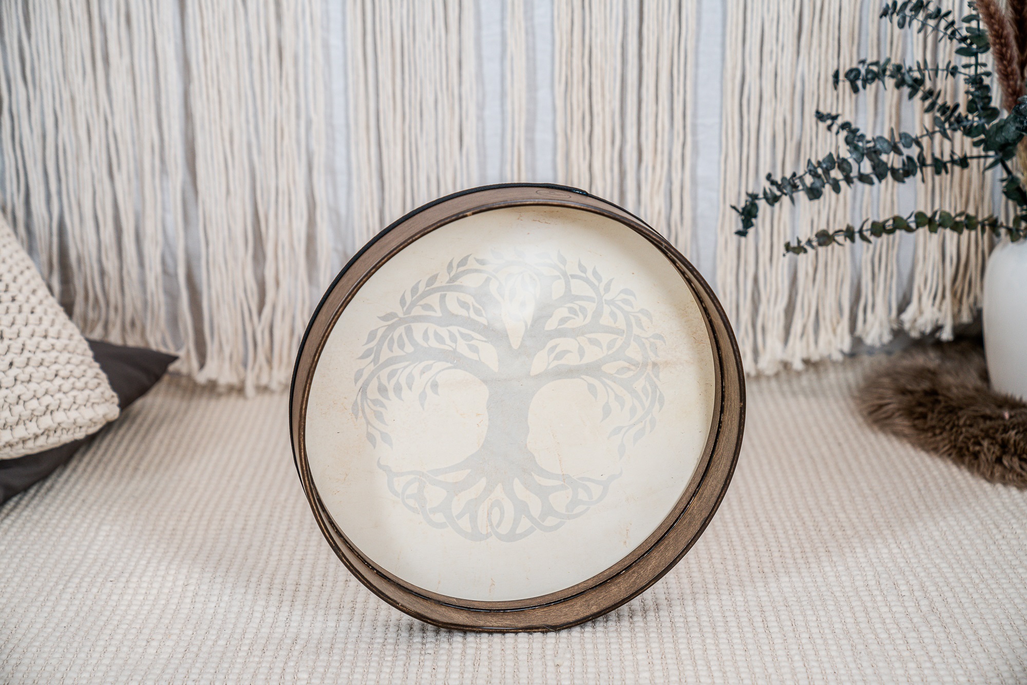 Hand drum Tento vysokokvalitný ručný bubon od spoločnosti Meinl Sonic Energy je vyrobený z ľahkého a pevného siamského duba, ktorý nástroju dodáva skvelé akustické vlastnosti. Drevené telo je potom natiahnuté na vybranú membránu z kozej kože, ktorá vytvára veľmi teplé a krásne rezonujúce tóny. Telo je samozrejme ergonomicky tvarované pre pohodlné držanie.