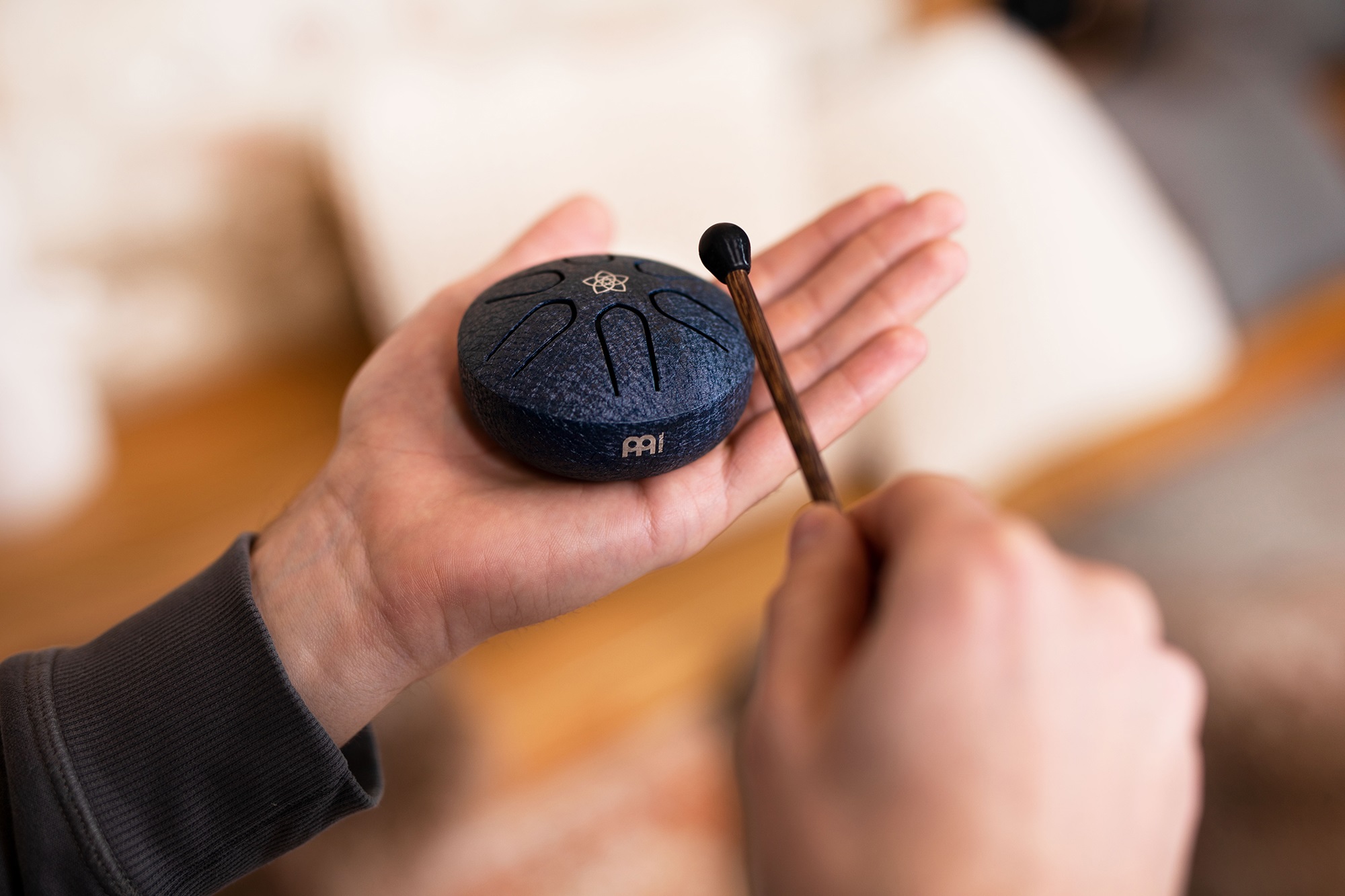 Tongue drum Vreckový bubon MEINL 3" A Major OM Gold je veľmi sympatický vreckový bubon s príjemným zvukom a cenou, vďaka čomu je vhodný na cesty, terapie, do učební alebo len tak domov. Vďaka továrenskému ladeniu si ju môžu vychutnať deti, začínajúci hráči a všetci, ktorí chcú hrať bez potreby hudobnej teórie alebo predchádzajúceho cvičenia. Tóny sú A5, B5, C#6, E6, F#6, A6.
