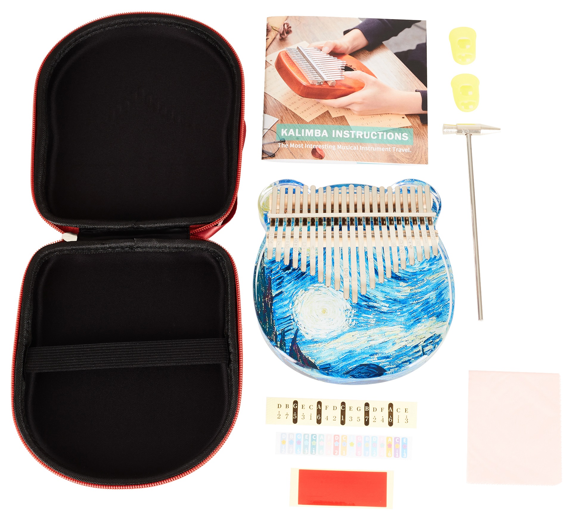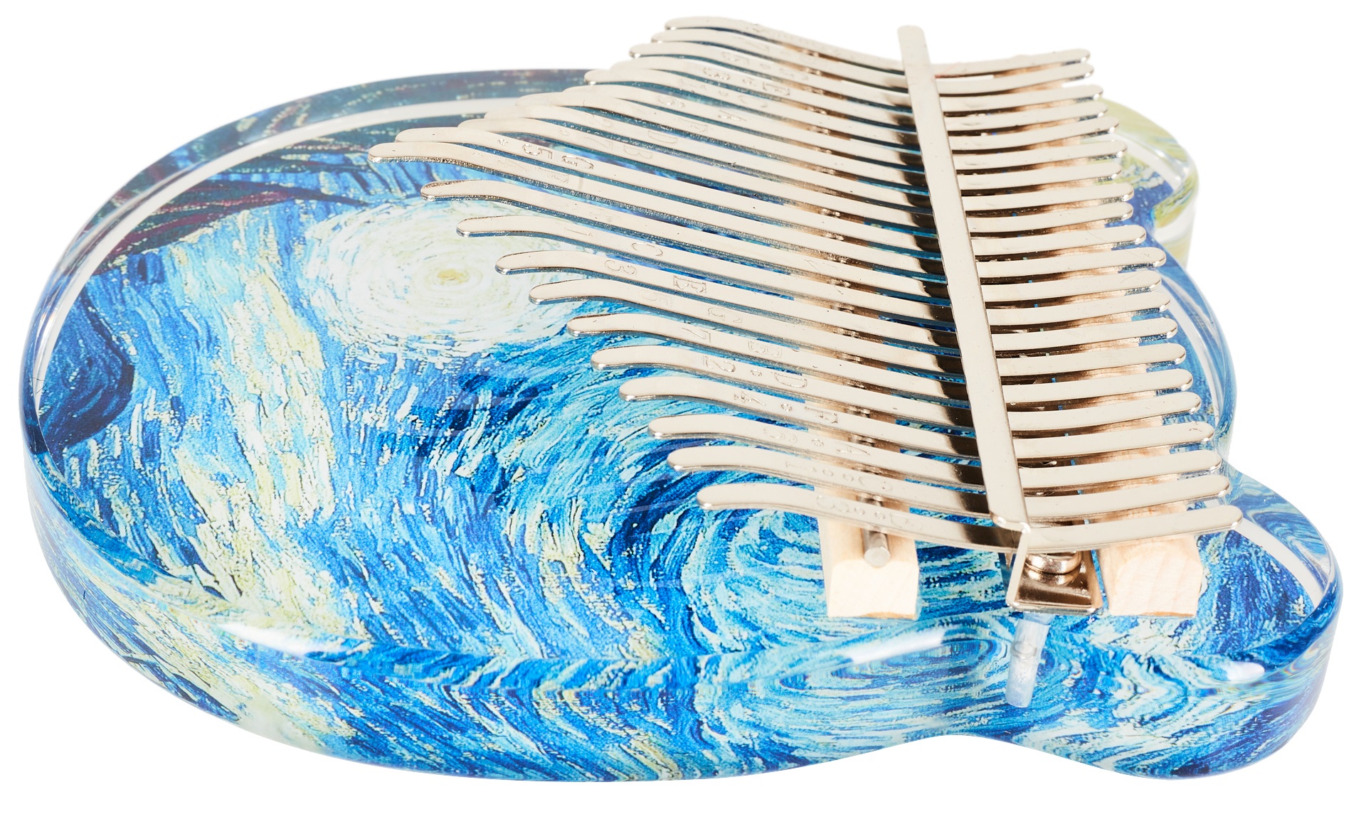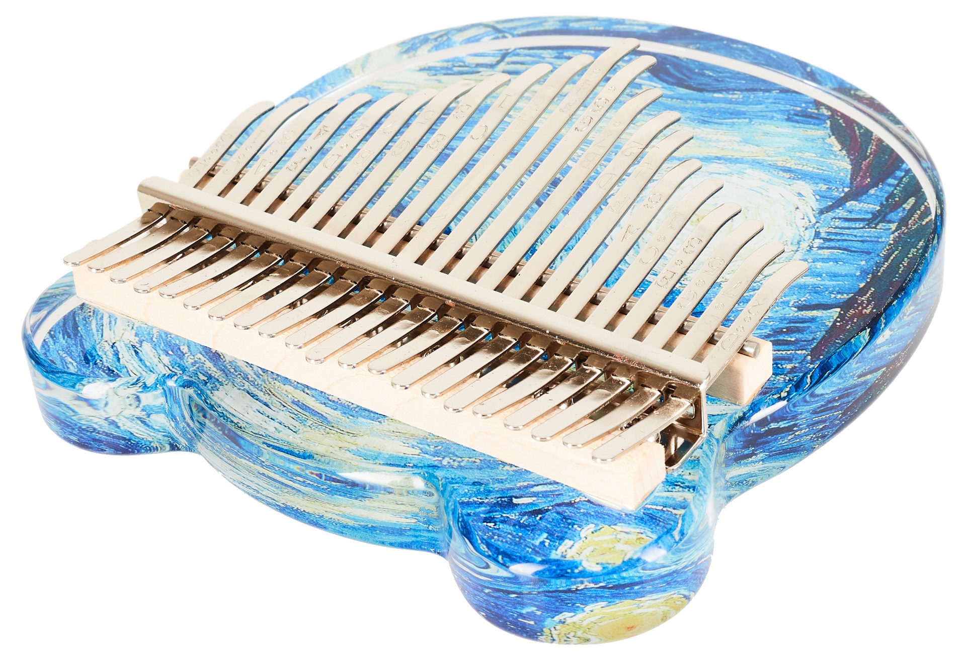 Kalimba Kalimba je jedinečný melodický nástroj, ktorý dodá vašej produkcii alebo živému vystúpeniu jedinečný a nezameniteľný prvok. Možno ho použiť na sprievodnú alebo sólovú hru. Tento model je netradične vyrobený z priehľadného akrylu, ktorý je veľmi odolný a poskytuje skvelé zvukové vlastnosti. Klávesy z uhlíkovej ocele potom dávajú nástroju jasný a hlasný, ale stále príjemne teplý zvuk. Klávesy sú tiež vybavené vygravírovanými tónmi, ktoré pomôžu zorientovať sa najmä novým hráčom. Súčasťou balenia je aj