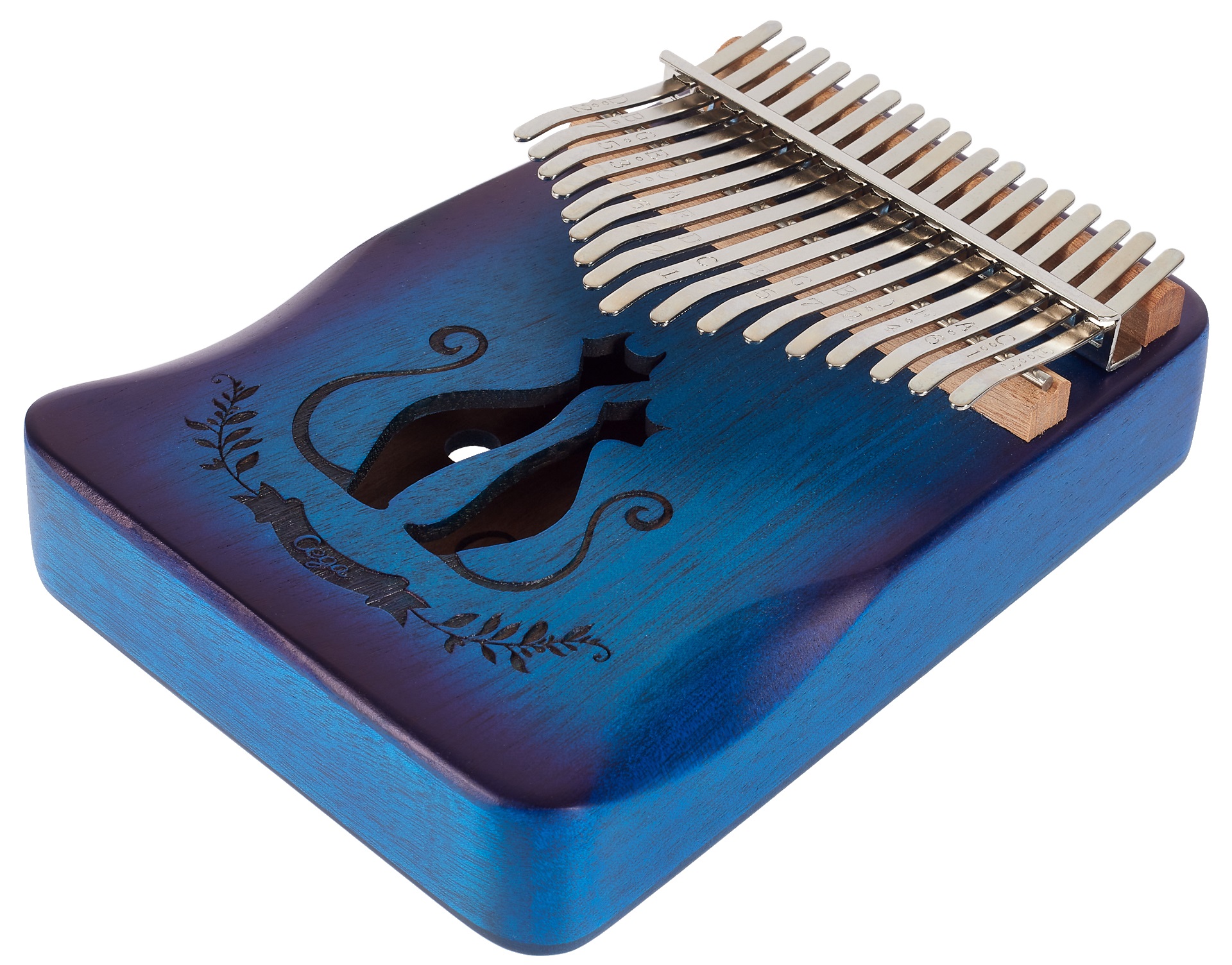 Kalimba Kalimba je jedinečný melodický nástroj, ktorý dodá vašej produkcii alebo živému vystúpeniu jedinečný a nezameniteľný prvok. Možno ho použiť na sprievodnú alebo sólovú hru. Kalimby od spoločnosti Cega sú vyrobené z vysokokvalitných drevín, ktoré sa sušia len prirodzeným spôsobom, čo im dodáva skvelé zvukové vlastnosti a maximálnu stabilitu. Tento model je vyrobený z osvedčeného mahagónového dreva a má rezonančný otvor, ktorý dodáva zvuku nástroja pevnosť a hutnosť. Klávesy z uhlíkovej ocele potom dáv