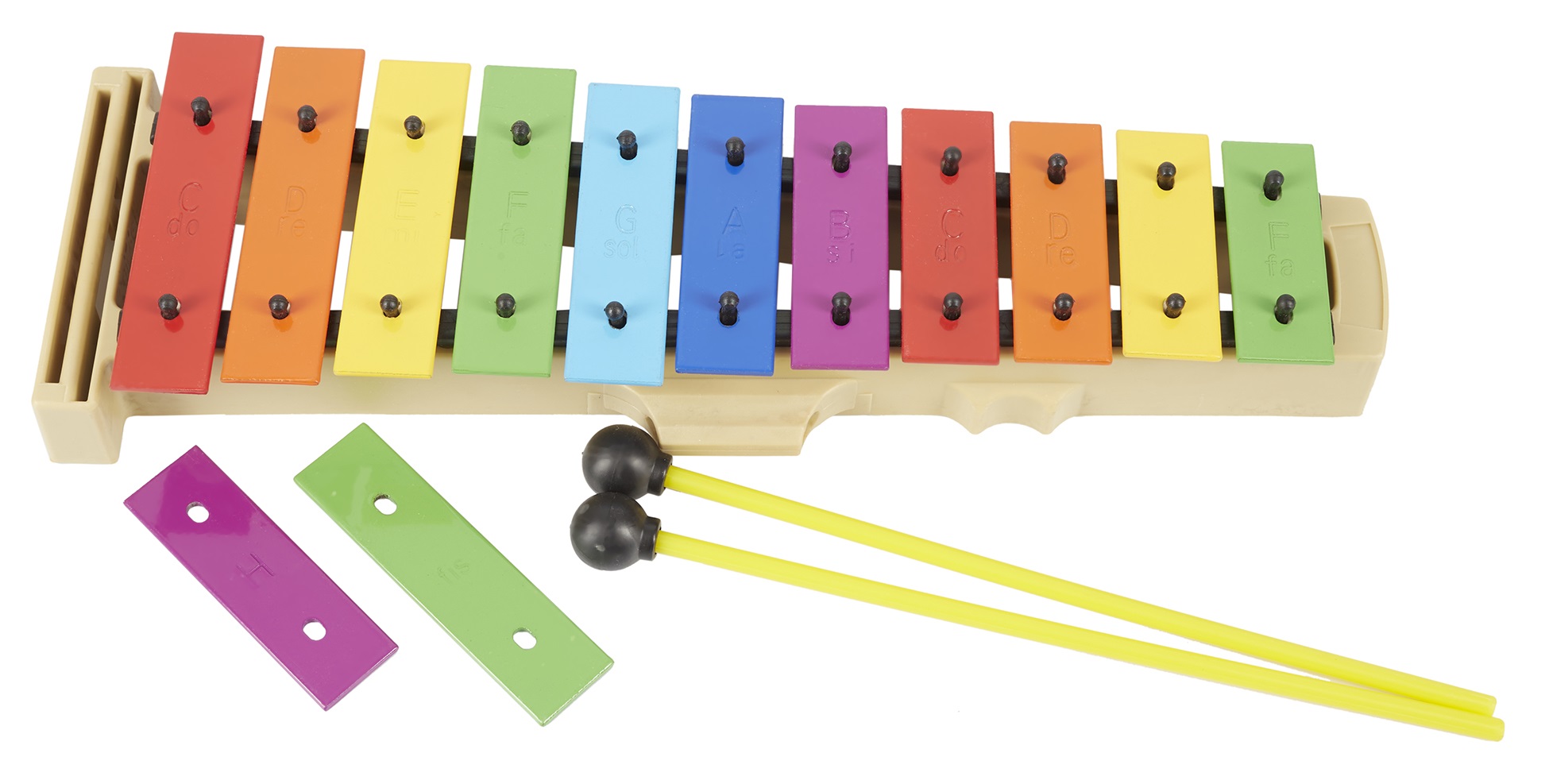 Zvonkohra Trinásťtónová zvonkohra vhodná pre najmenších a začínajúcich hudobníkov. Zvonkohra ponúka čistý, dynamický a farebný zvuk, ktorý sa nestratí ani vo veľkom detskom zbore. Telo nástroja je vyrobené z kvalitného plastu, jednotlivé kamene s hrúbkou 5 mm sú vyrobené z hliníka, preto majú prenikavejšiu farbu tónu a vydržia aj silnejšie údery. Súčasťou balenia je pár paličiek.