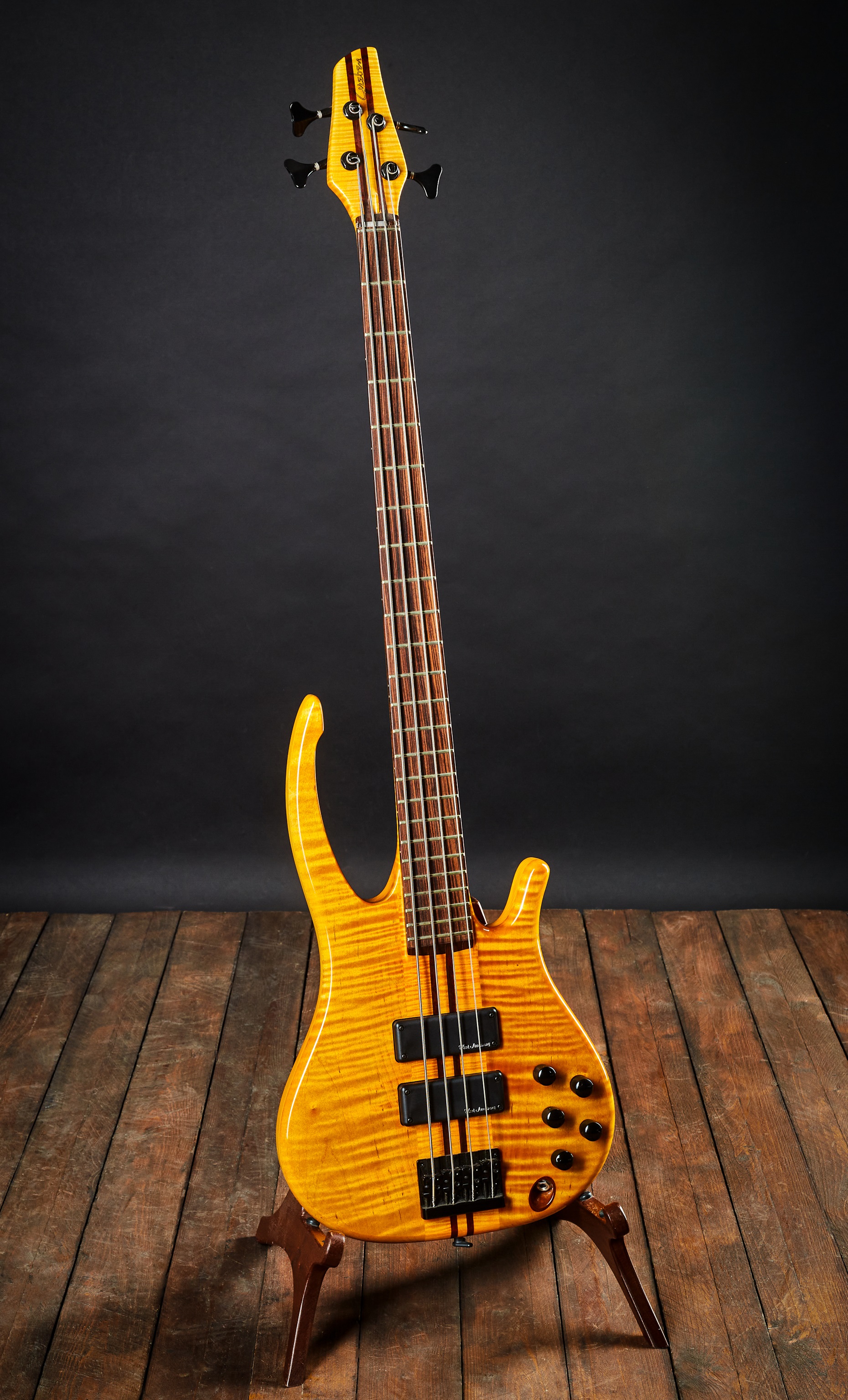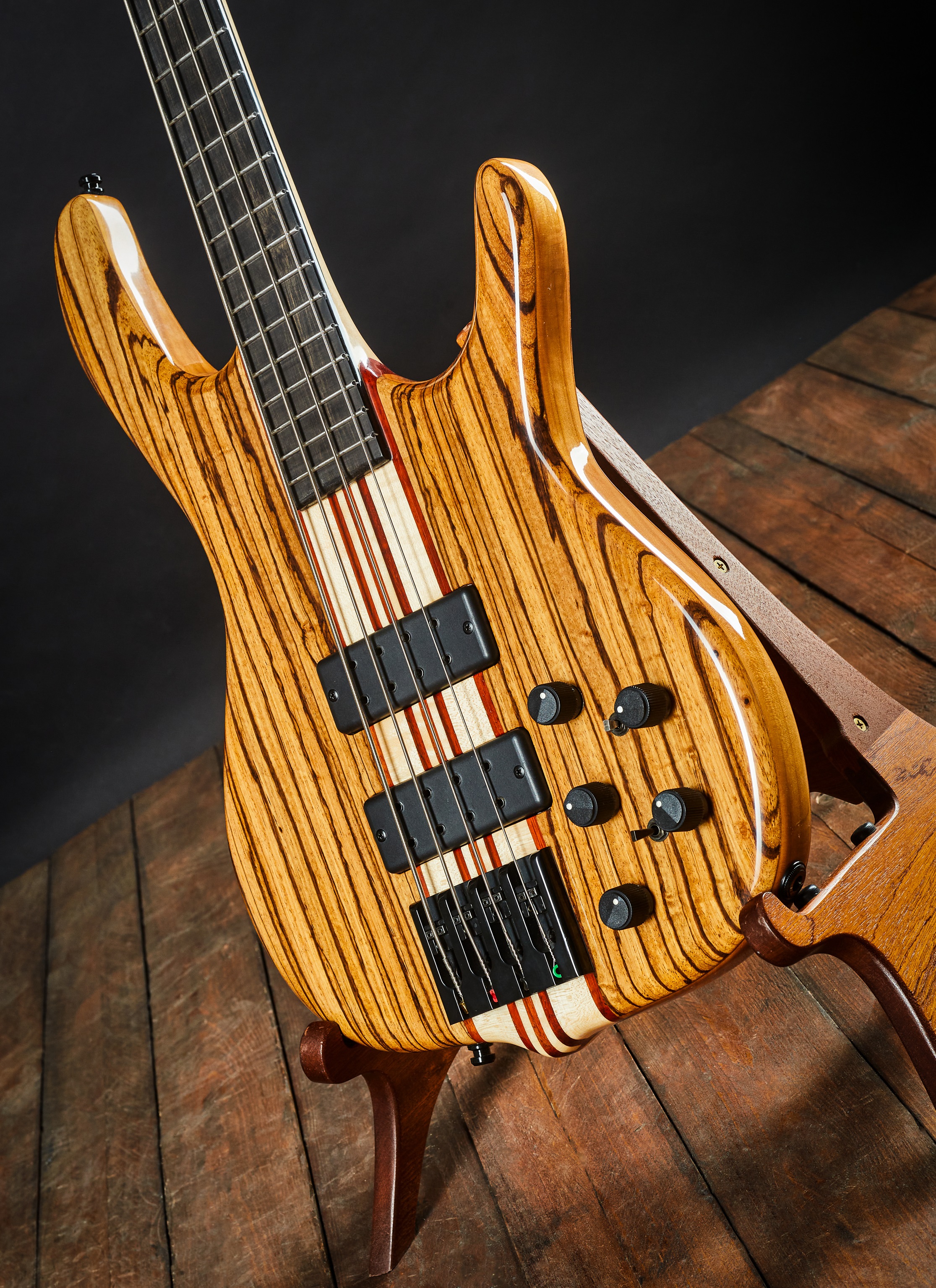 Elektrická basgitara Unikátna basgitara zo zbierky legendárneho slovenského výrobcu snímačov Kenta Armstronga, Juraja Turzu. Nástroj bol vyrobený v roku 2018 súčasným maďarským gitaristom Csabom Boldoghom a je kópiou modelu BSR od Kena Smitha. Ide o prvotriedne majstrovské dielo s použitím vybraných materiálov, spomedzi viacerých drevín najmä zebrano na vrchnej doske a hlavici. Nástroj je nový. Predáva sa v režime BAZAAR s DPH.