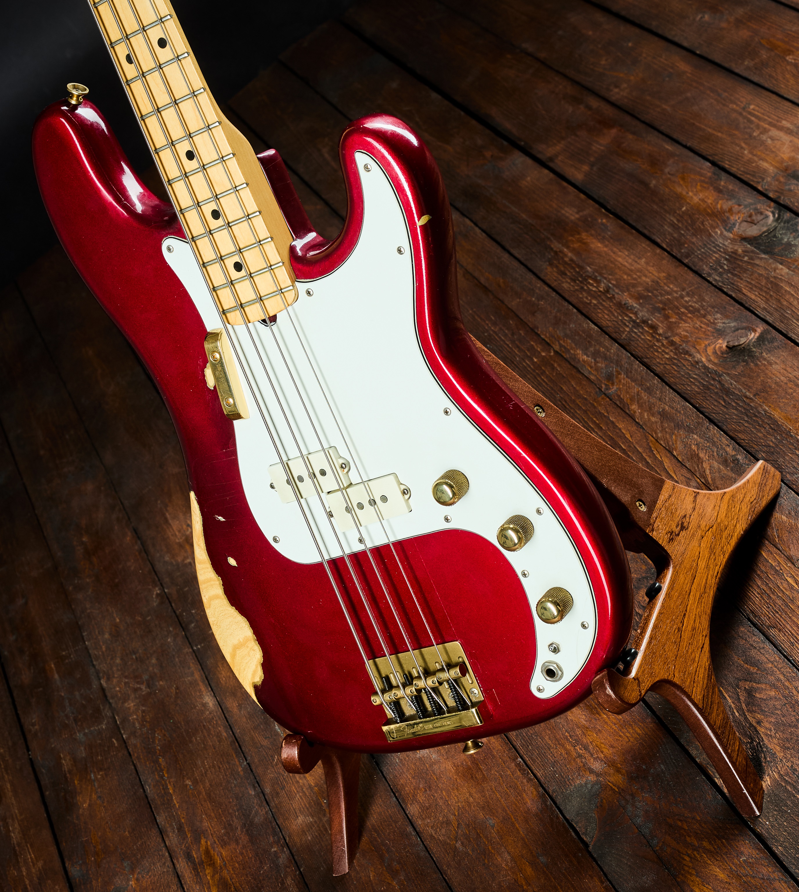 Elektrická basgitara Zberateľská rarita v pôvodnom stave. Jasanové telo je lakované v červenej farbe Candy Apple Red, javorový krk má tiež farbu "matching headstock". Skvost zo začiatku 80. rokov, keď aj tradičné nástroje ako Fender Precision Bass dostali aktívnu elektroniku, s modelom Special. Nástroj sa stále vyrába v starej továrni Fender vo Fullertone v Kalifornii a uzatvára éru značky, ktorú vlastní spoločnosť CBS. Potenciometre pochádzajú z roku 1980. Elektronika je plne funkčná a pôvodná. Hardvér je
