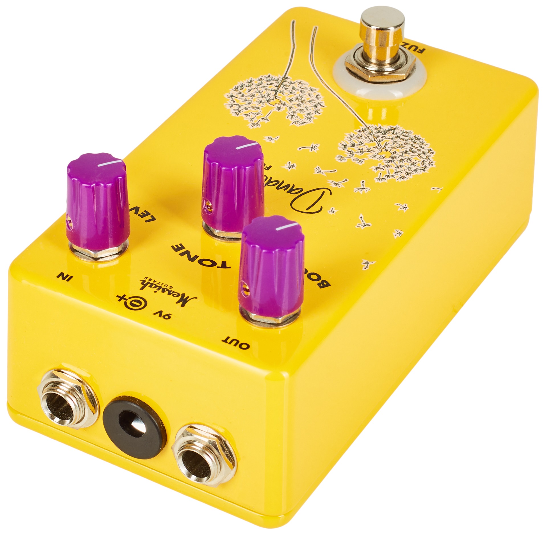 Gitarový efekt Dandelion – Fuzzdrive je op-amp fuzz/drive inšpirovaný japonskými overdrive pedálmi. Krabička ponúka teplý, sýty fuzz a zaujímavý, zvukovo trochu drsnejší overdrive. Pomocou troch gombíkov nastavíte množstvo gainu (Boost), EQ (Tone) a výstupnú hlasitosť (Level), ktorá v kombinácii s ostatnými gombíkmi určuje pomyselný prah medzi overdriveom a fuzzom. Efekt pedálu je zapojený ako true bypass. Na napájanie je potrebný 9V adaptér (nie je súčasťou balenia). Batériové napájanie nie je k dispozícii