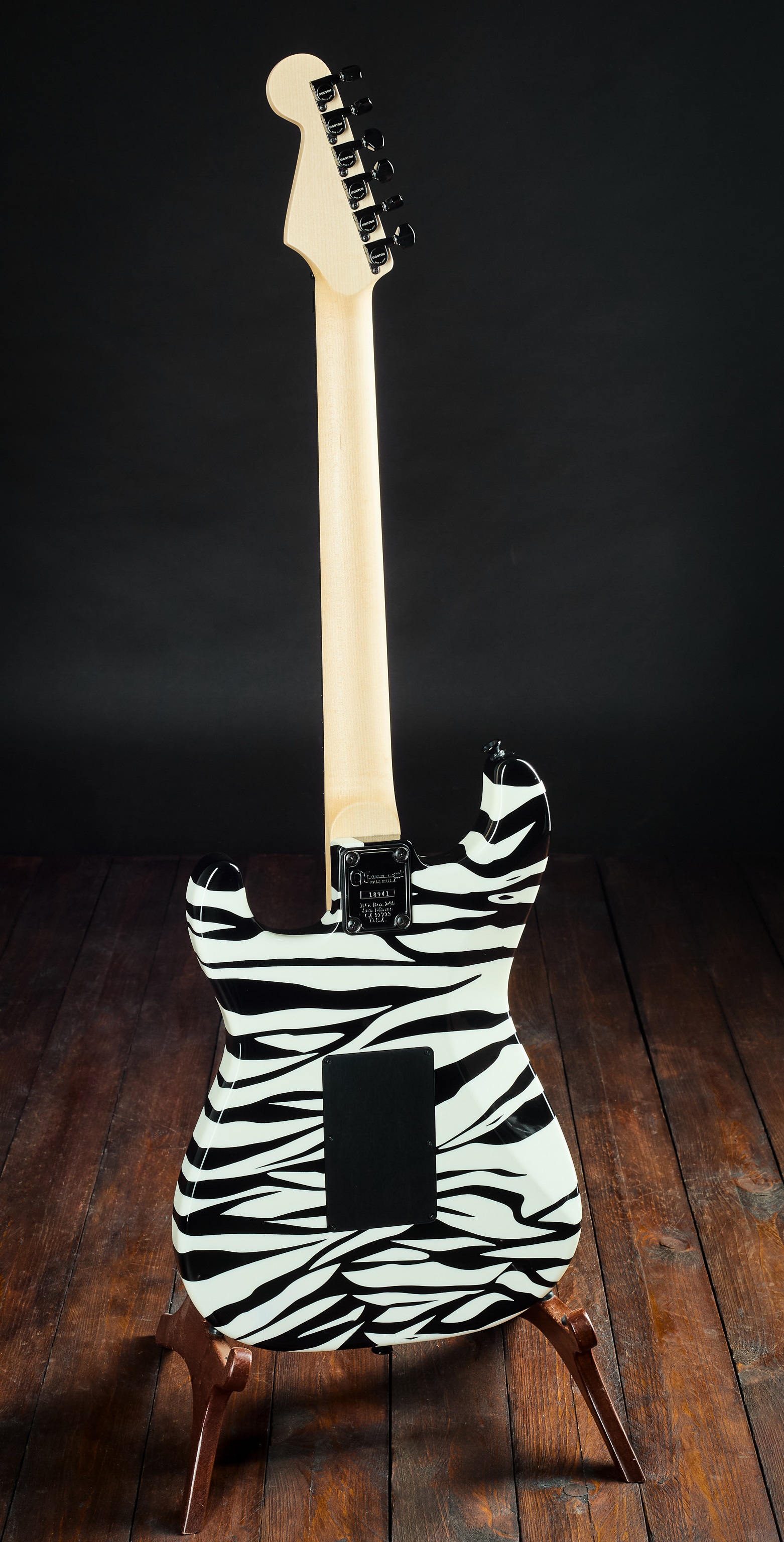 Elektrická gitara Ručne maľovaný dizajn dominuje vzhľadu tohto super stratu z dielne Custom Shop americkej spoločnosti Charvel. Ide o limitovanú edíciu, vyrobenú v apríli 2025, a prakticky o nový, vyskúšaný nástroj. Gitara má telo z výberovej jelše, javorový krk Quartersawn a ebenový hmatník (Compound Compound radius 12″ – 16″) s 22 Jumbo pražcami. Hardvér tvorí predovšetkým pevné tremolo Original Floyd Rose s nultým pražcom Floyd Rose Locking R3. Snímače sú 2 humbuckery Dimarzio D Activator X v kontrastnom