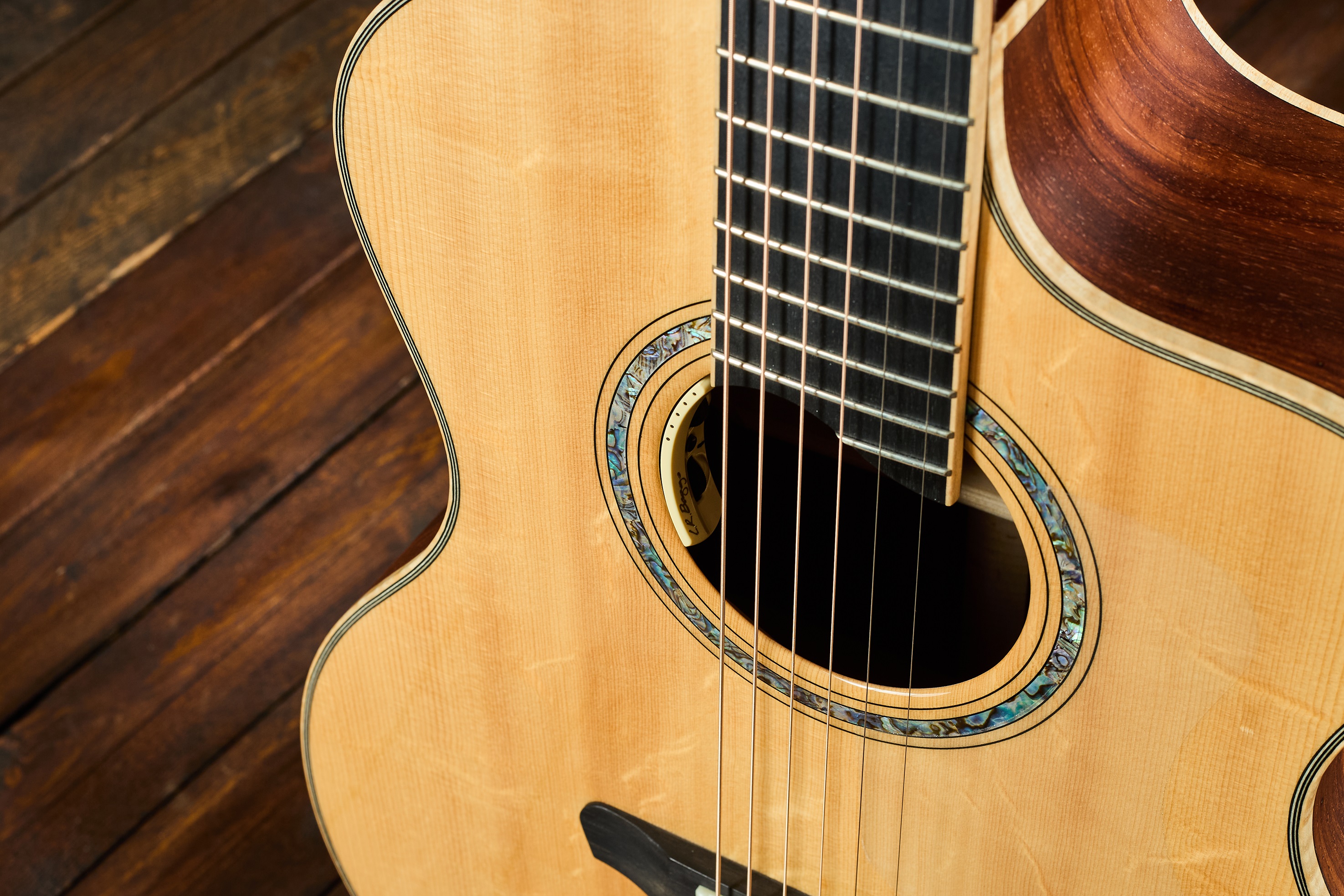 Elektroakustická gitara Séria Master od slovenskej značky Dowina, ručne vyrábaný celomasívny nástroj. Gitara z roku 2018 je v perfektnom stave, málo hraná. Tvar tela Grand Auditorium. Solídny výkon v nízkych a stredných frekvenciách, výborná na prstovú techniku a vybrnkávanie, skrátka univerzálny nástroj na všetky príležitosti. Výrez napomáha ľahkému prístupu do vyšších polôh. Smreková vrchná doska s hmatníkom s medvedím pazúrom. Zadná doska je vyrobená z 2 kusov kokosového dreva (3 kusy sú bežné vzhľadom n