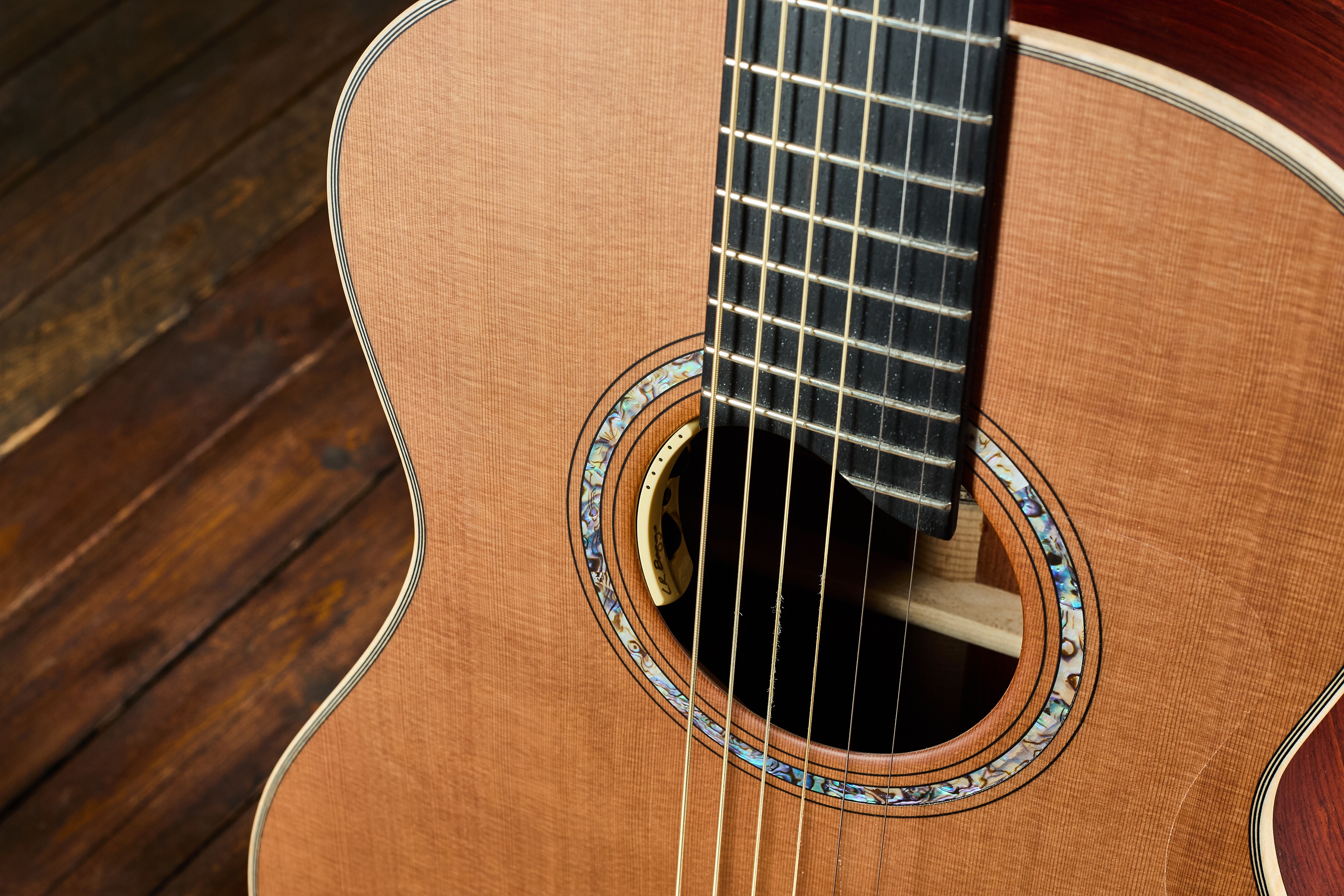 Elektroakustická gitara Séria Master od slovenskej značky Dowina, ručná výroba. Nový, celomasívny nástroj, prakticky takmer nehraný. Tvar tela Gold Orchestra. Solídny výkon v nízkych a stredných frekvenciách, výborný na prstovú techniku a picking; skrátka univerzálny nástroj na všetky príležitosti. Menzúra 648 mm. Zadná doska je vyrobená z 2 kusov cocobolo (3 kusy sú bežné vzhľadom na vzácnosť tohto materiálu). Nástroj je vybavený ozvučovacím systémom L.R. Baggs Anthem. Predáva sa ako použitý tovar. Súčasťo