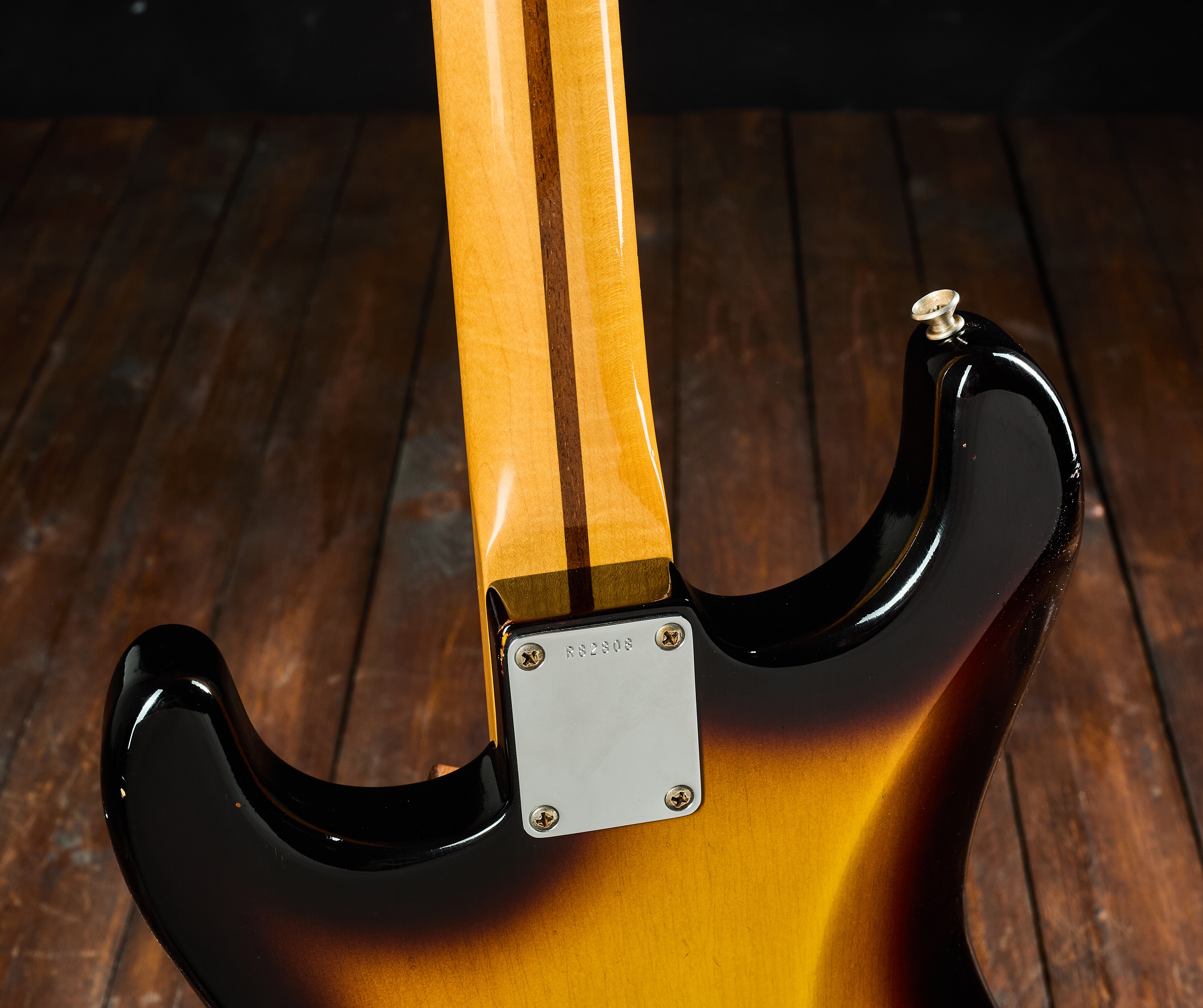 Elektrická gitara Vlastný Fender Custom Shop Stratocaster z roku 2015, vyrobený z veľkej časti podľa špecifikácií Erica Claptona. Na rozdiel od signature modelu má táto gitara štandardné single snímače a telo je vyrobené z jelše. Javorový krk s AA lemovaním má Claptonov profil v tvare písmena "V", rádius 9,5" a 22 pražcov; elektronika je vybavená tónovou clonou TBX a predovšetkým Claptonovým stredovým zosilňovačom +25 dB. Gitara je vo veľmi dobrom stave, bežne používaná. Predáva sa vrátane originálneho kufr