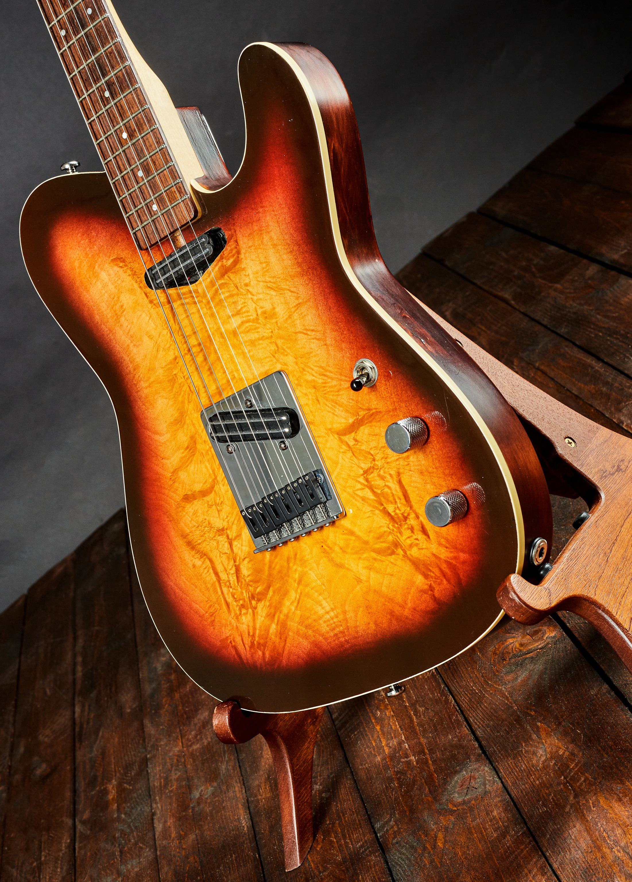 Elektrická gitara Jeden z posledných nástrojov, ktoré vyrobil majster gitary Peter Jurkovič. Telecaster s peknou javorovou vrchnou doskou a piezo snímačom v krku. Telo je vyrobené z lipy, krk z javora a hmatník z palisandru. Elektromagnetické snímače sú tu minihumbuckery (značka nešpecifikovaná). Nultý pražec a sedlá TUSQ. Predáva sa zo systému BAZAAR s DPH vrátane kvalitného soft-case.