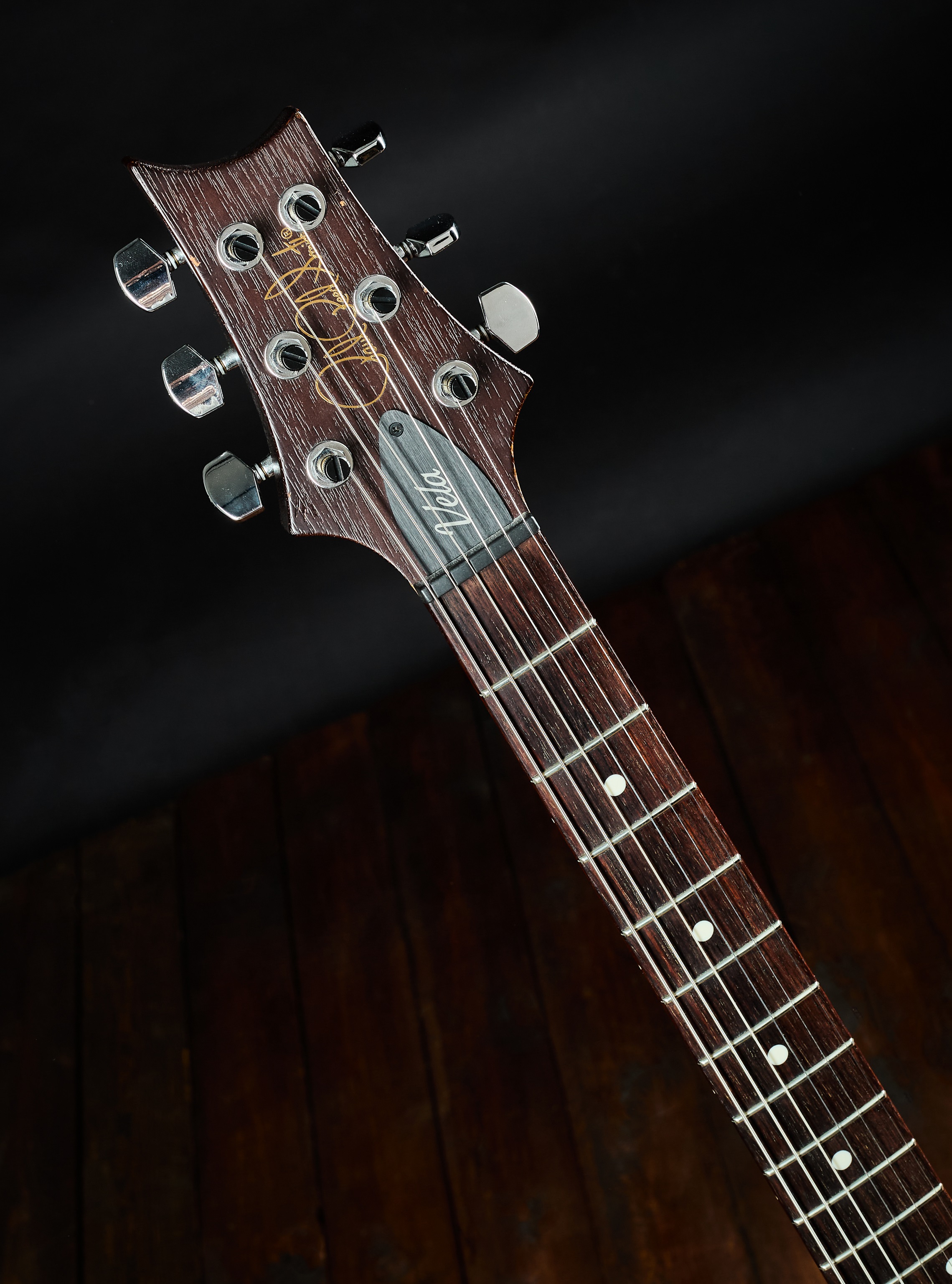 Elektrická gitara Model Vela je starý len niekoľko rokov a tento nástroj z roku 2020 sa od súčasnej produkcie líši saténovým lakom a iným snímačom pri krku. Profesionálny nástroj vyrobený v USA, gitara vo veľmi dobrom stave. Telo gitary je vyrobené z masívneho mahagónu. K mahagónovému krku s profilom Pattern Regular je prilepený palisandrový hmatník s dvadsiatimi dvoma pražcami. Polohové bodky uľahčujú orientáciu na jeho povrchu. Kombinácia firemného humbuckera Vela (Starla) v pozícii bridge a single-coil s