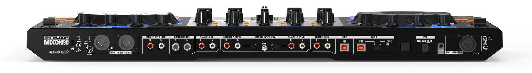 DJ kontrolér so zvukovou kartou Mixon 8 Pro je multifunkčný štvorkanálový DJ kontrolér od spoločnosti Reloop vhodný pre pokročilejších a profesionálnych DJ-ov na používanie v štúdiu alebo pri živých vystúpeniach. Ovládač môžete pripojiť až k dvom zariadeniam, k počítaču a notebooku, pretože Mixon 8 Pro ponúka integrované zvukové rozhranie. Je vybavený intuitívnym ovládacím panelom s podsvietenými panelmi, štyrmi dotykovými FX pedálmi vrátane trojpásmového EQ a výkonnými Jog kolesami s viacriadkovým displejo