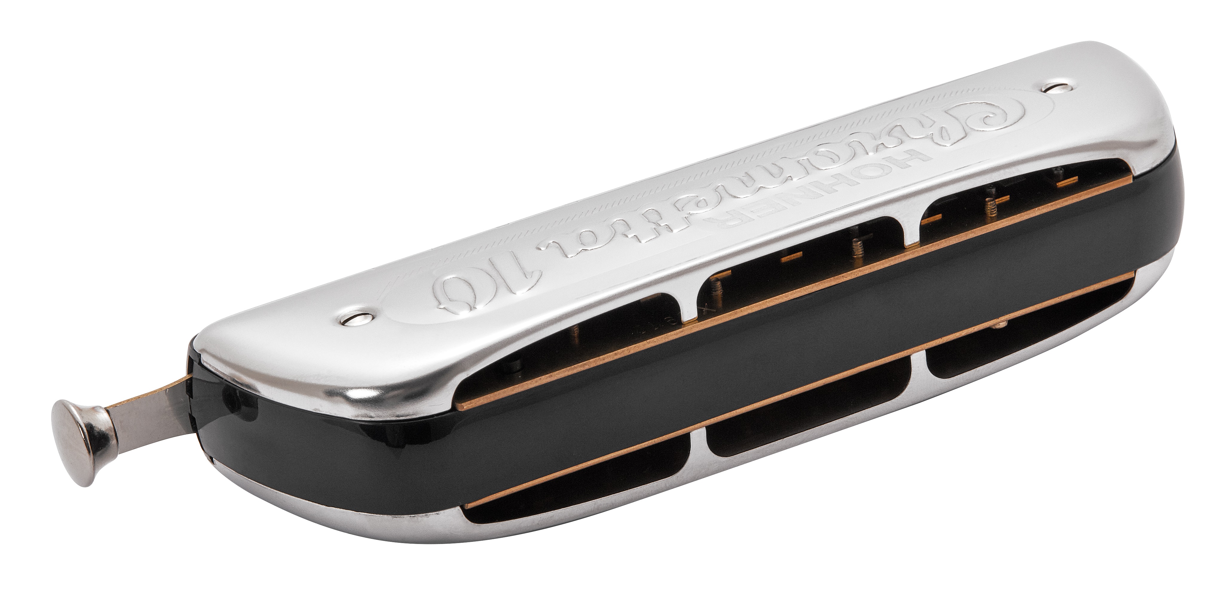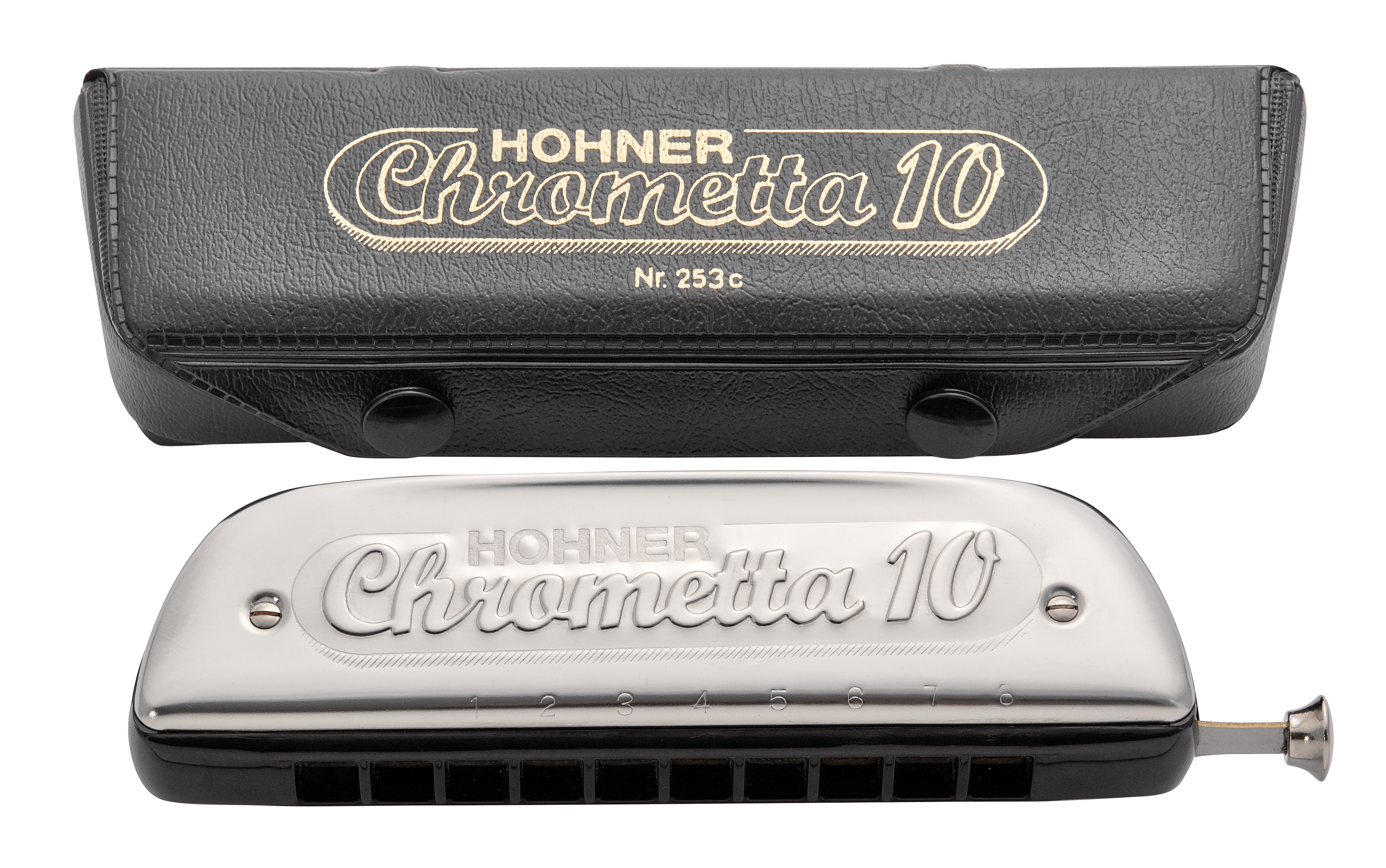Fúkacia harmonika Harmoniky Chrometta predstavujú základný kvalitný rad chromatických harmoník nemeckej značky Hohner. Ponúka elegantný retro dizajn, dobrú hrateľnosť a kvalitný zvuk. Ich jednoduchý slide systém umožňuje hrať každý tón a výraz, sofistikované jazzové melódie, ľudové vokálne linky alebo texty populárnych hitov. Kompaktný model Chrometta 10 je ideálny na zoznámenie sa s chromatickou harmonikou, ale poteší aj skúsených alebo profesionálnych hráčov. Jeho telo je vyrobené z odolného kompozitného