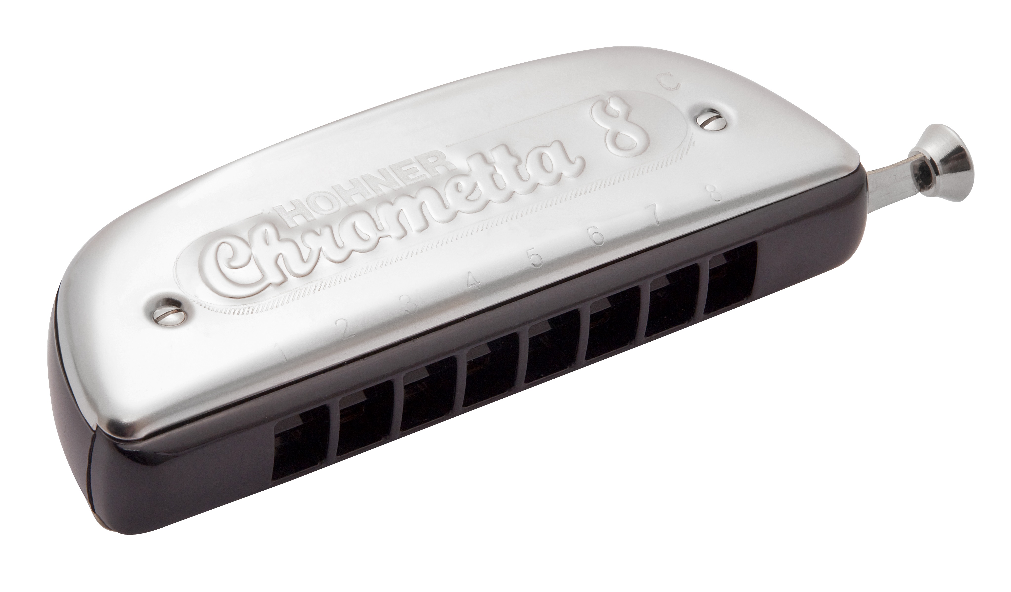 Fúkacia harmonika Harmoniky Chrometta predstavujú základný kvalitný rad chromatických harmoník nemeckej značky Hohner. Ponúka elegantný retro dizajn, dobrú hrateľnosť a kvalitný zvuk. Ich jednoduchý slide systém umožňuje hrať každý tón a výraz, sofistikované jazzové melódie, ľudové vokálne linky alebo texty populárnych hitov. Kompaktný model Chrometta 8 je ideálny na zoznámenie sa s chromatickými harmonikami, ale poteší aj skúsených alebo profesionálnych hráčov. Jeho telo je vyrobené z odolného kompozitného