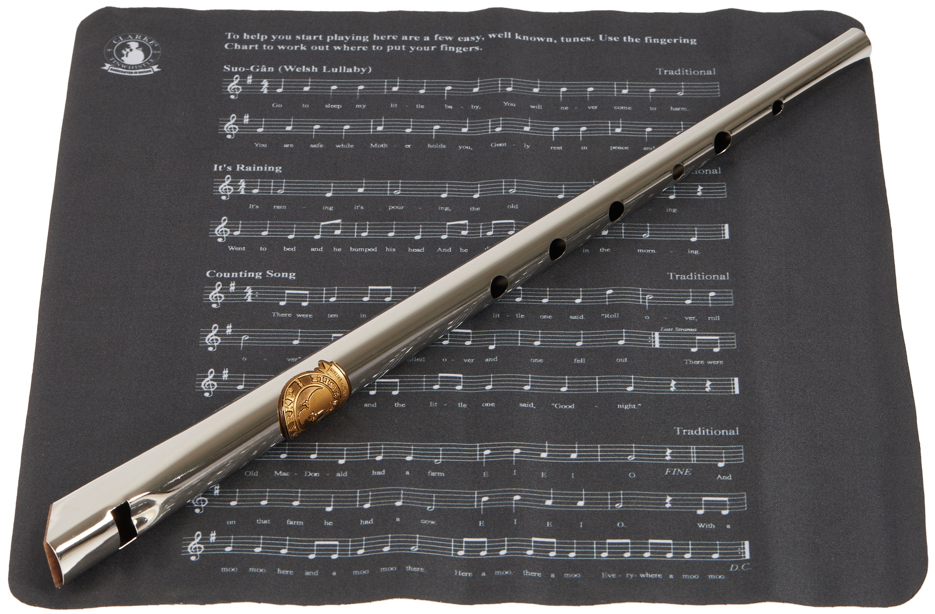 Írska flauta Flauty Clarke Original Tinwhistle sa vyrábajú v Anglicku a sú dostupné v ladení C a D. Model Nickel Plated C Original je írska flauta s niklovou povrchovou úpravou, ktorá chráni kov pod niklovou vrstvou pred hrdzou, čím predlžuje životnosť a funkčnosť flauty. Súčasťou balenia je čistiaca handrička a prstoklad. Írska flauta je tradičný nástroj používaný v ľudovej/keltskej hudbe, s jej zvukom sa však stretnete v širokom spektre hudobných žánrov – či už pri vystúpení ako sólový nástroj alebo ako s