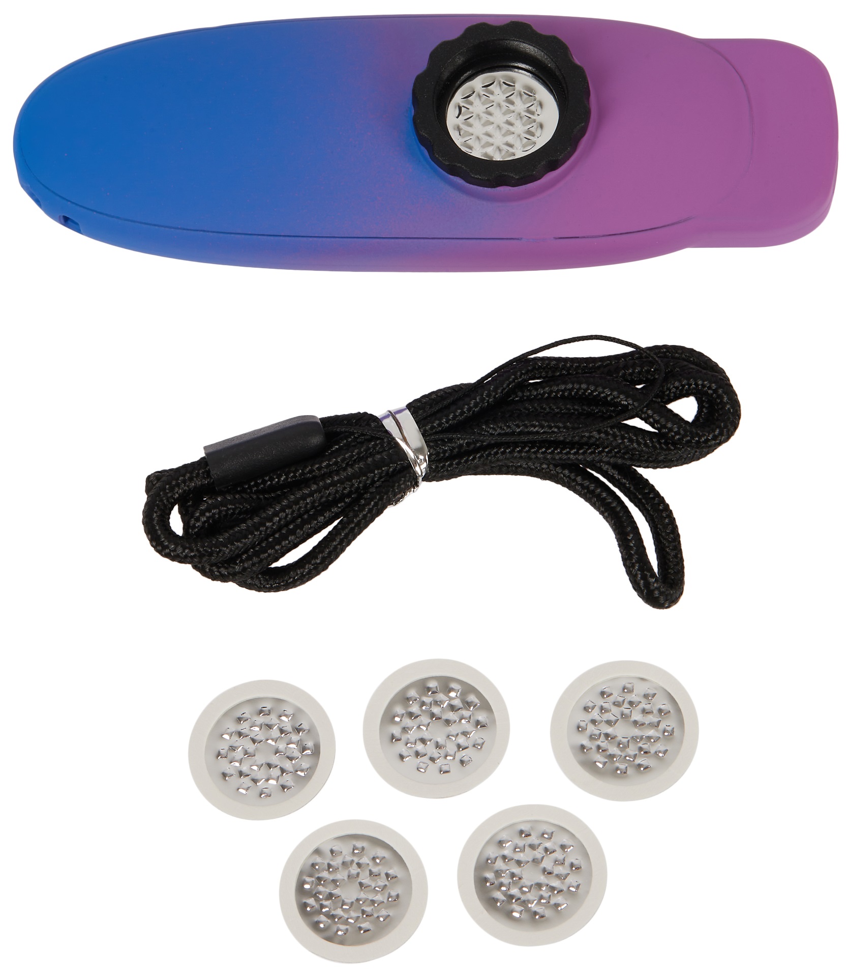 Kazoo Klasické plastové kazoo. Otáčaním krytu môžete nastaviť napätie membrány a zmeniť zvukovú odozvu kazoo. Kazoo sa odporúča umyť pred prvým použitím a po každom hraní.