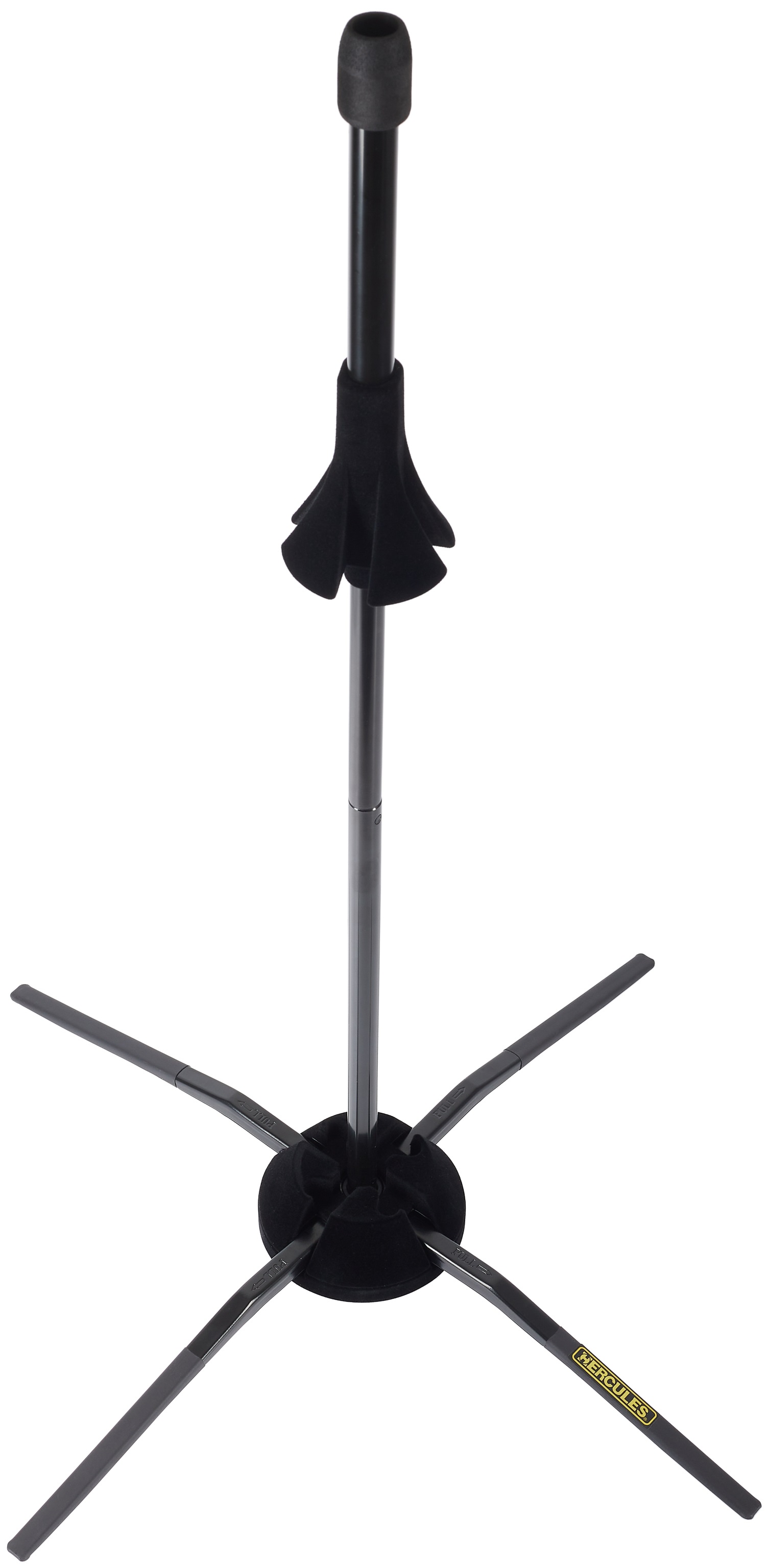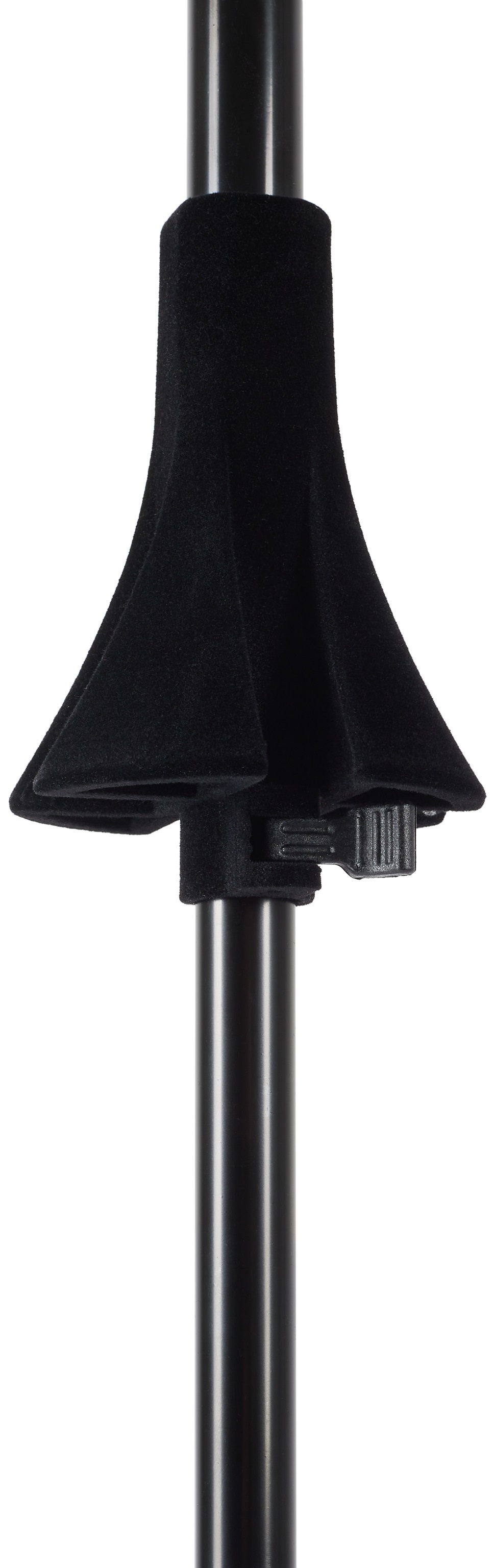 Stojan pre trombón Jednoduchý, skladný a bezpečný – to sú slová, ktoré charakterizujú tento stojan na trombón, ktorý sa po zložení jednoducho vloží do nástroja. Ochranu pred poškodením rezonančnej dosky zabezpečuje zamatová vložka v zodpovedajúcom tvare.