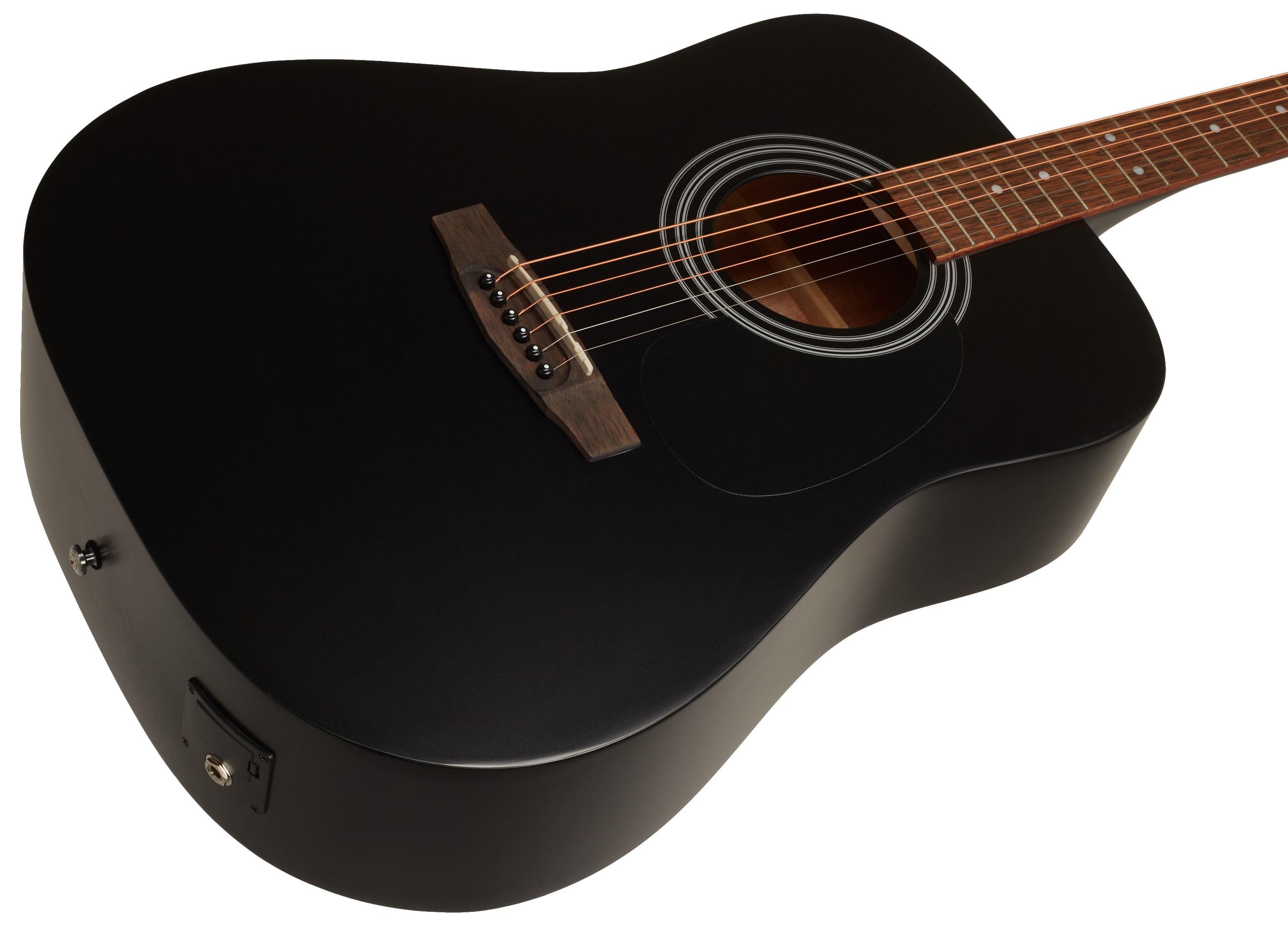 Elektroakustická gitara Cort AD 810E je elektroakustická gitara typu dreadnought. Vrstvené telo nástroja sa skladá zo smrekovej prednej dosky a mahagónovej zadnej dosky a lubov. Táto osvedčená kombinácia drevín dodáva nástroju vyvážený zvuk s potrebnou dávkou zvukovej čistoty a hrejivosti. K mahagónovému krku je prilepený hmatník z exotického dreva merbau osadený dvadsiatimi pražcami s polohovacími bodmi, ktoré vám pomôžu orientovať sa na jeho povrchu. Uloženie strún v špeciálne tvarovanej hlavici z merbau