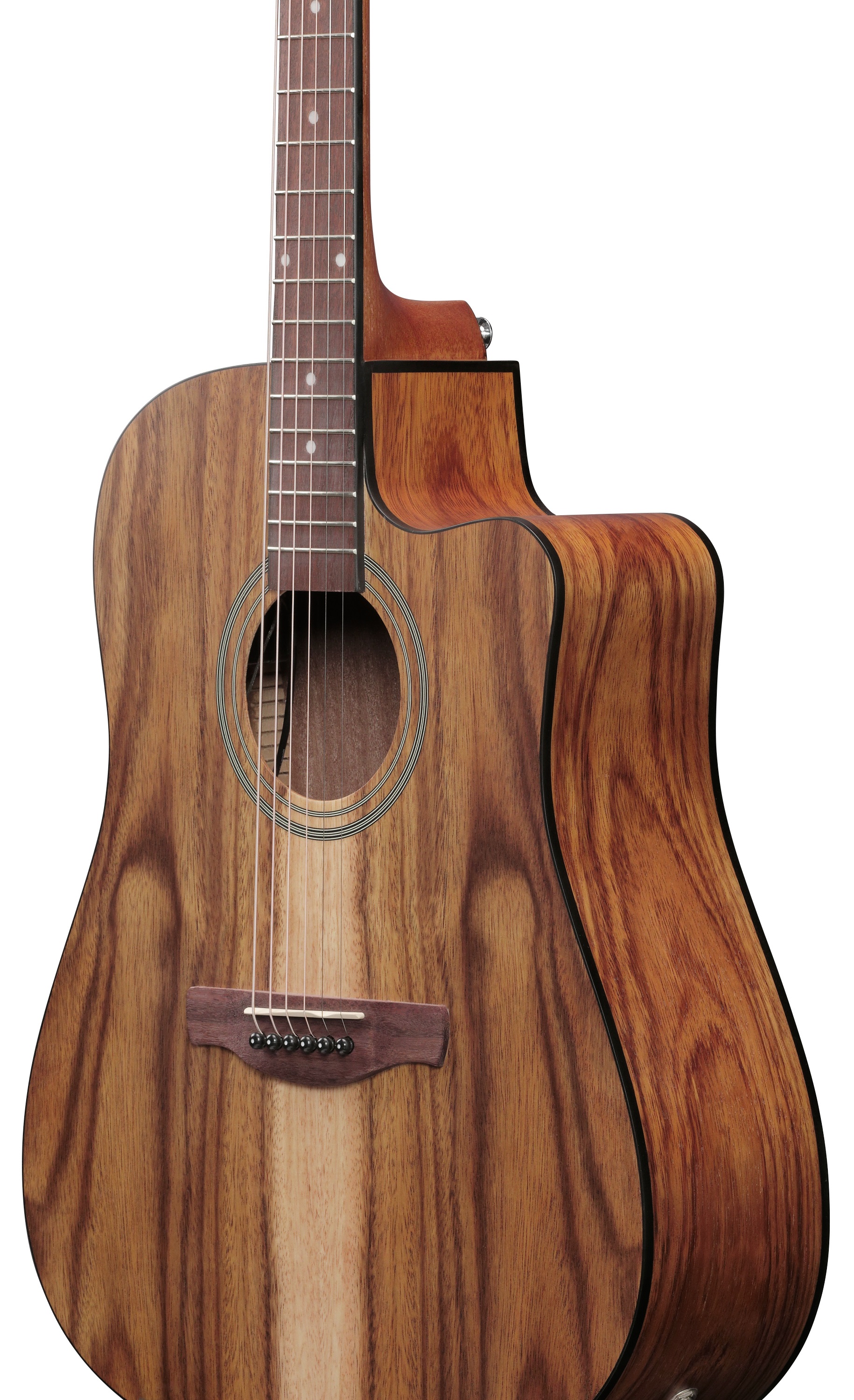 Elektroakustická gitara Akustické a elektroakustické gitary Ibanez série V sú cenovo dostupné nástroje vhodné pre začínajúcich hráčov. Veľké, rezonančné telo elektroakustickej gitary V40WSCE-OPB Dreadnought je vyrobené z vrstveného exotického dreva White Siris (Albánsko). Ku krku meranti je prilepený hmatník nandu s 20 pražcami. Spodný výrez tela uľahčuje dotyk na vyšších polohách hmatníka. Ozvučenie nástroja zabezpečuje podkobylkový piezo snímač a predzosilňovač Ibanez AEQ-2T s dvojpásmovým ekvalizérom a v