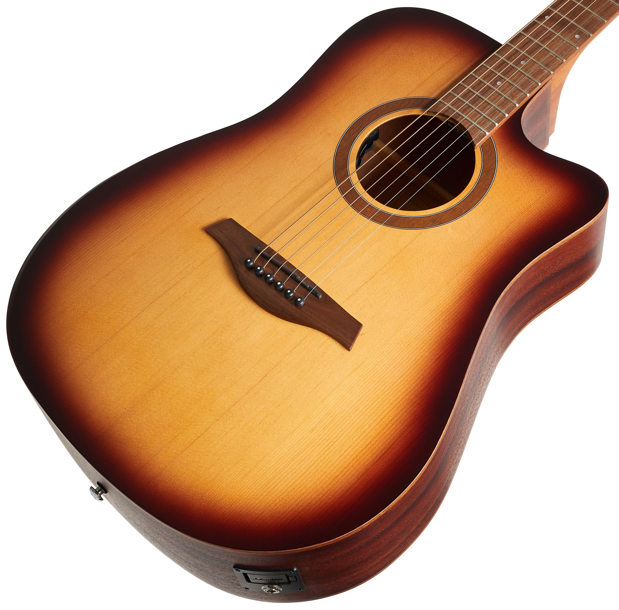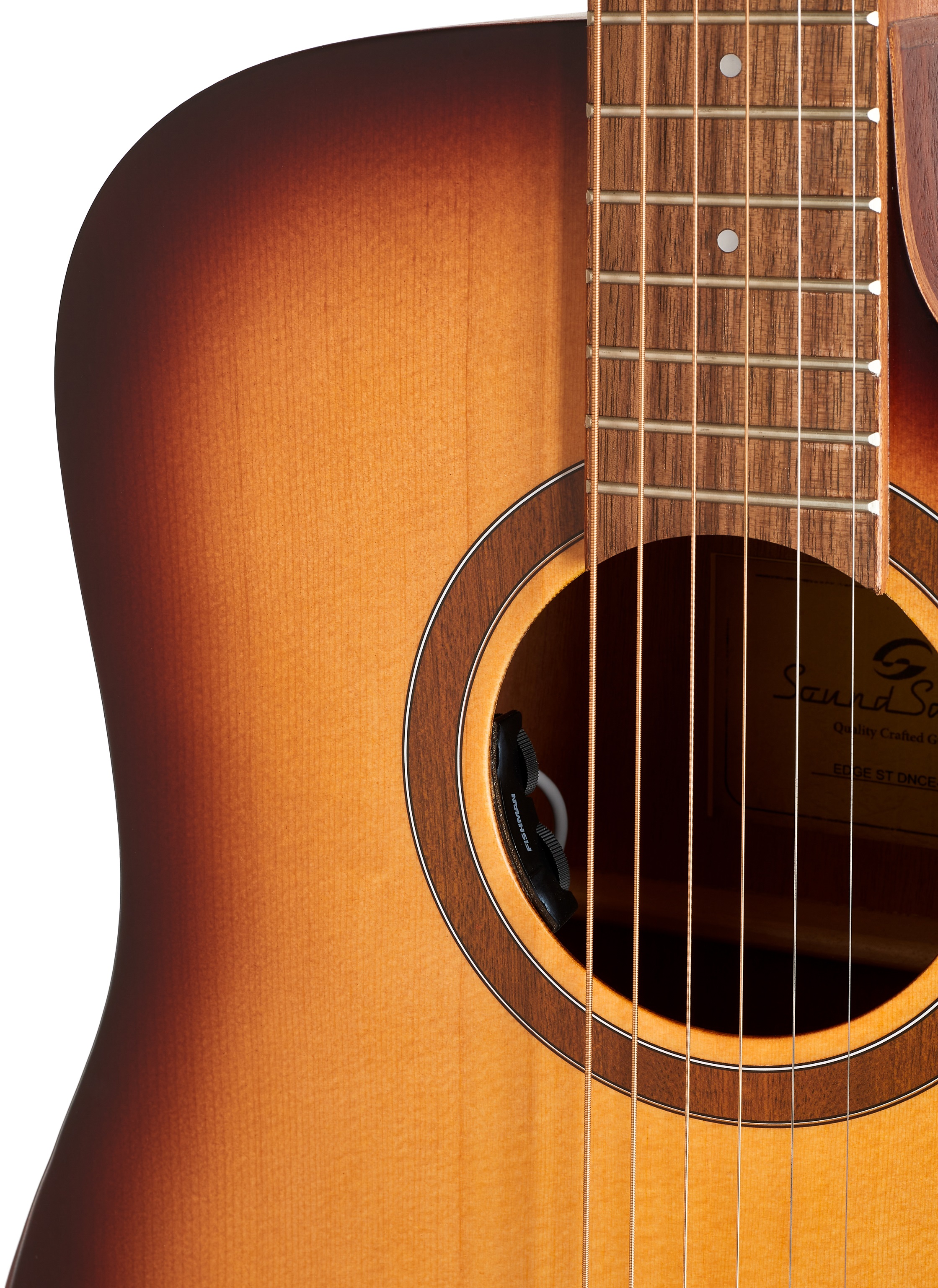 Elektroakustická gitara Soundsation EDGE ST DNCE-YSB je cenovo dostupná elektroakustická gitara s veľkým rezonančným telom typu dreadnought vhodná pre začiatočníkov. Predná doska gitary je vyrobená zo smrekovej preglejky, zadná doska a luby sú zo sapele preglejky. Krk je vyrobený z okoumé s príjemným "C" profilom a je osadený orechovým hmatníkom s 20 pražcami. Nižší výrez tela uľahčuje hmatník vo vyšších polohách. Struny držia v chrómových die-cast ladiacich mechanikách a v hmatníku z orechového dreva. Štýl