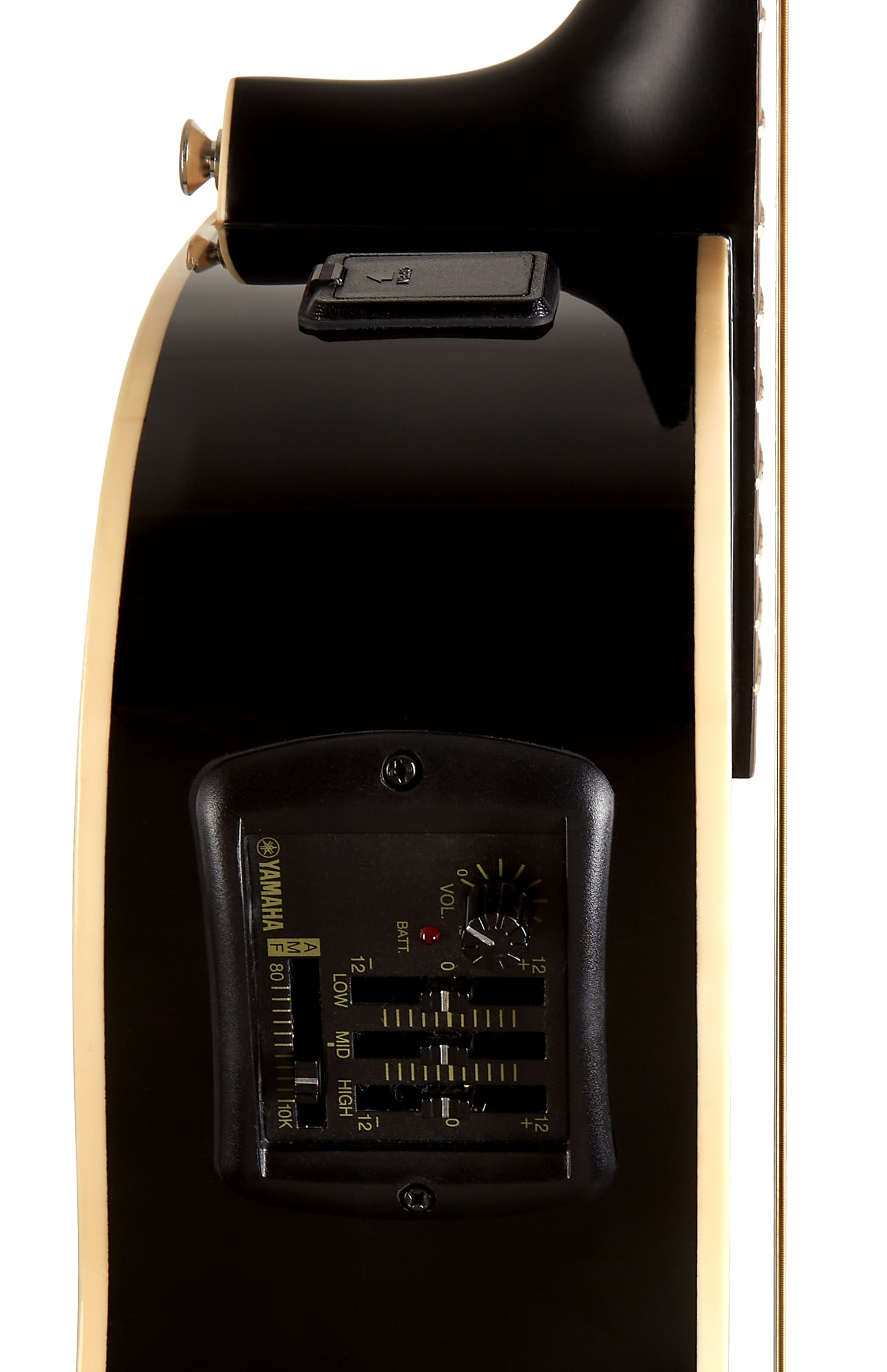 Elektroakustická gitara Modelový rad akustických gitár Yamaha F/FX sú kvalitne spracované nástroje vhodné pre začínajúcich gitaristov, ktorí hľadajú dobrú gitaru za prijateľnú cenu, ktorá vám po niekoľkých úderoch nezoberie chuť hrať. FX370C je model elektroakustickej gitary s populárnym tvarom tela Western Dreadnought a nižším výrezom pre lepšie ladenie vo vyšších polohách hmatníka. Telo nástroja je vyrobené z prednej dosky z preglejky, zadnej dosky a bokov tiež z preglejky nato. Gitara je tiež vybavená pa
