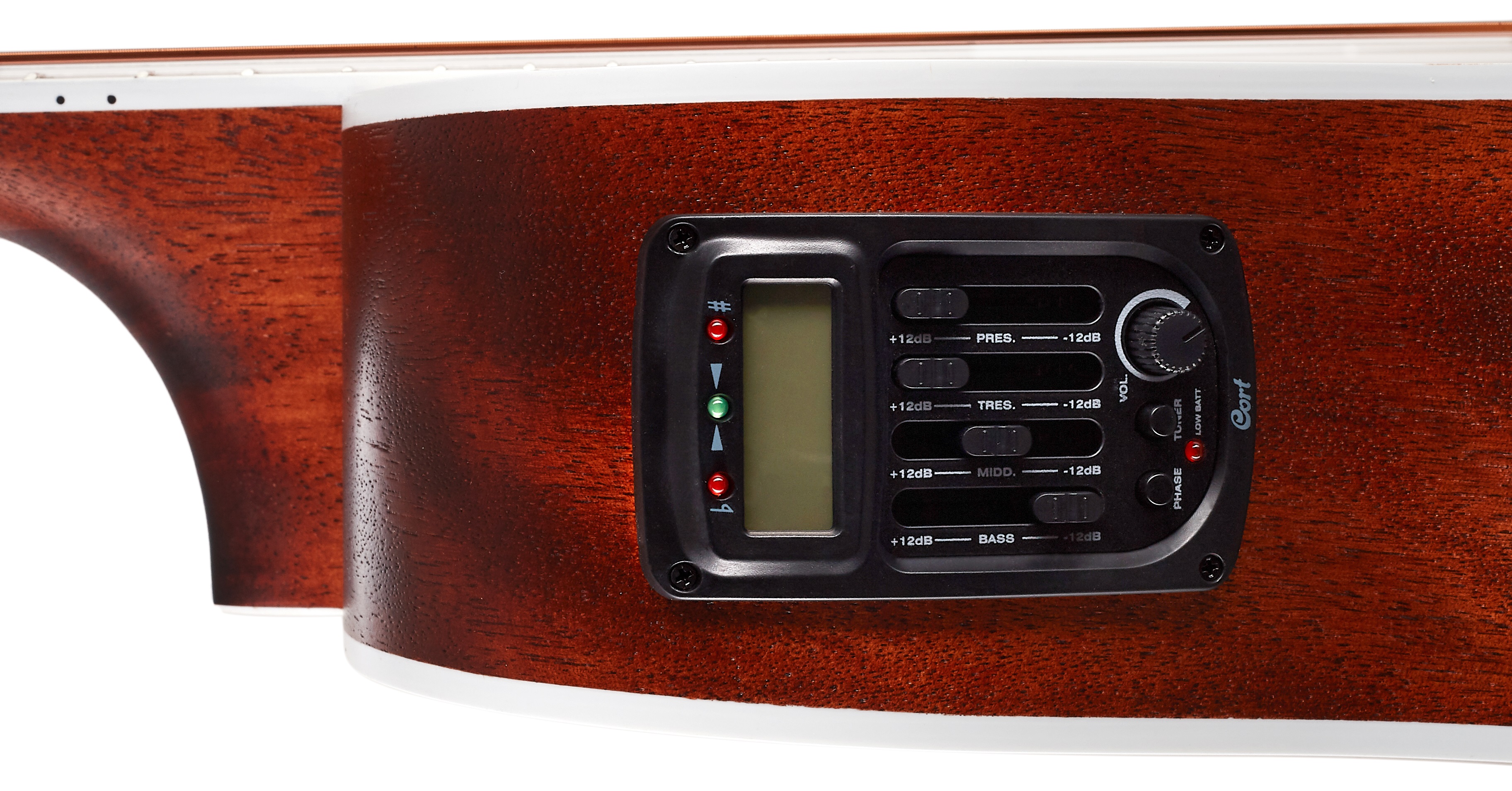 Elektroakustická gitara Modelový rad Grand Regal od spoločnosti Cort ponúka gitary v obľúbenom tvare Grand Auditorium (veľkosťou medzi väčším typom Dreadnought a menším typom Concert), ktoré ponúkajú plný, vyvážený zvuk univerzálne vhodný na hru prstami a trsátkom. Elektroakustické gitary GA-MEDX sú základnými kvalitnými modelmi tejto série. Predná doska tejto gitary je vyrobená zo smrekového dreva, zadná doska a luby z mahagónovej preglejky. Mahagónový krk je spojený s hmatníkom z merbau s 20 pražcami a po