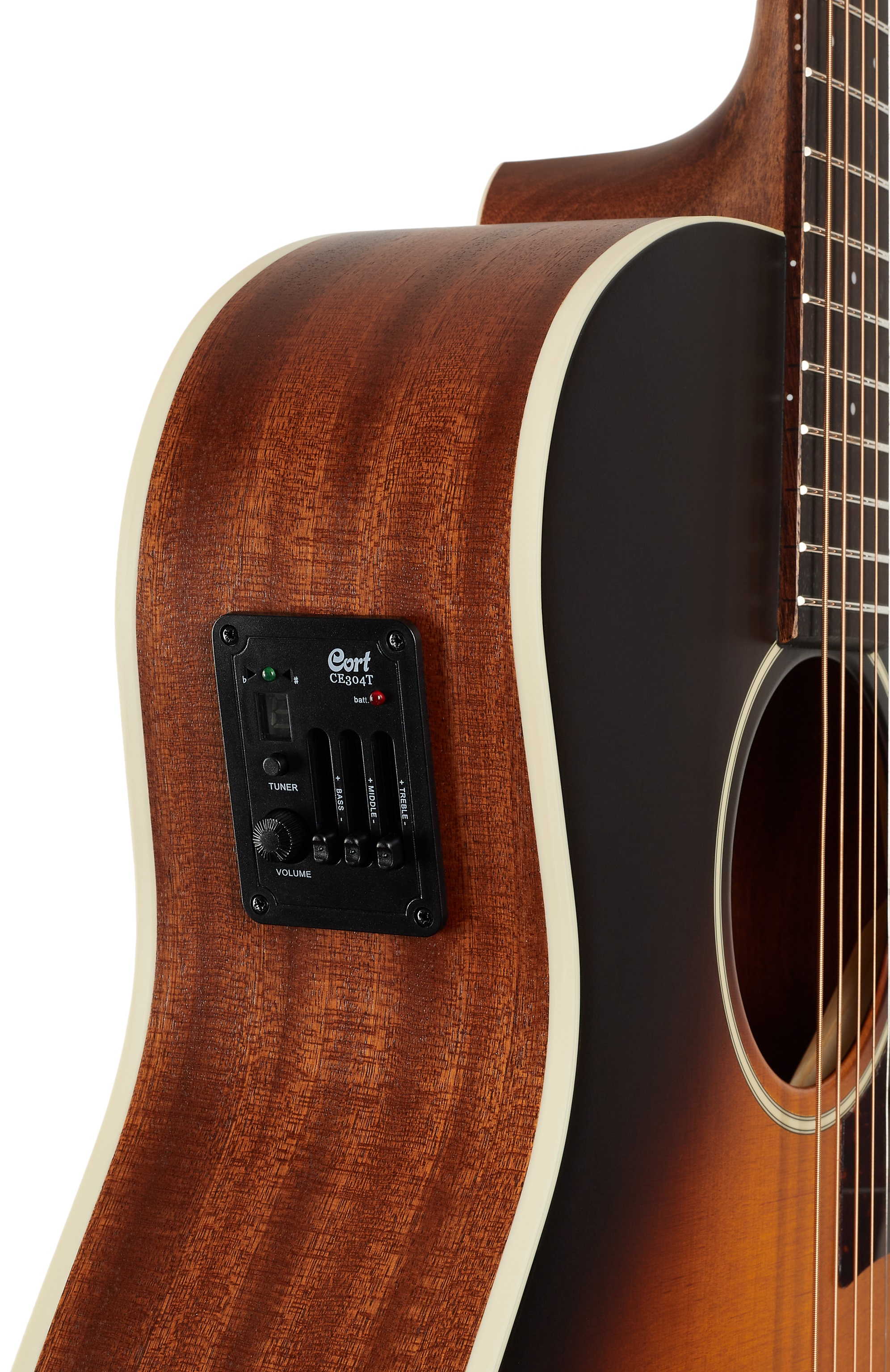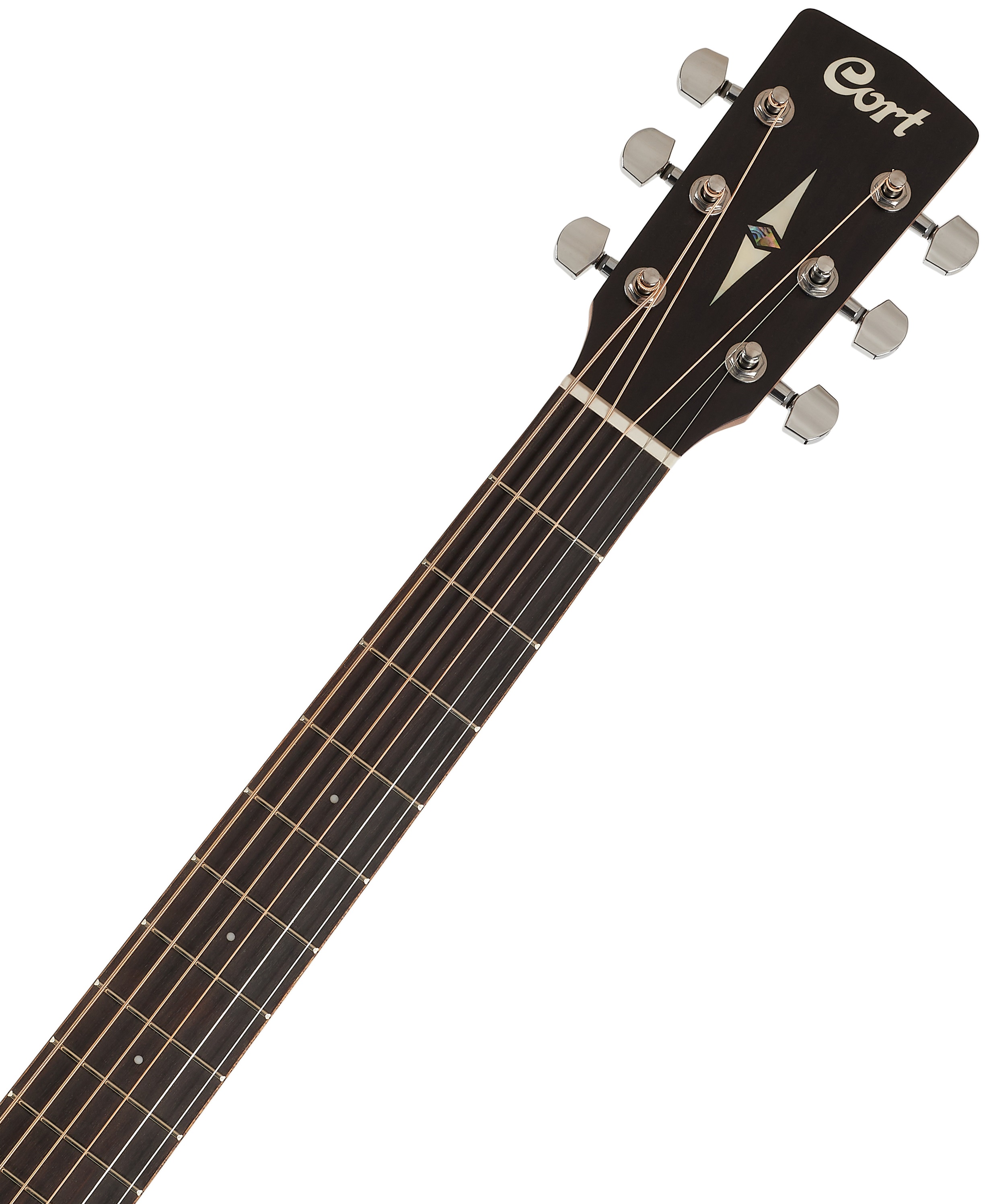 Elektroakustická gitara Modelový rad Grand Regal od spoločnosti Cort ponúka gitary v obľúbenom tvare Grand Auditorium (veľkosťou medzi väčším typom Dreadnought a menším typom Concert), ktoré ponúkajú plný, vyvážený zvuk univerzálne vhodný na hru prstami a trsátkom. Predná doska Cort GA1E OPSB je vyrobená z masívneho smrekového dreva, zatiaľ čo zadná doska a luby sú z laminovaného mahagónu. Mahagónový krk je prilepený k 20-pražcovému ovangkolovému hmatníku s bielymi polohovými bodkami, ktoré uľahčujú orientá