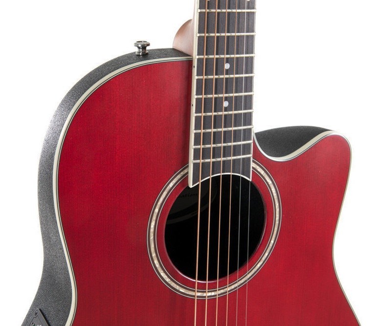 Elektroakustická gitara Rad Applause predstavuje cenovo dostupnejšie akustické gitary s dizajnovými prvkami nástrojov Ovation. Predná doska AB24II CS Mid Cutaway Ruby Red Satin je vyrobená z laminovaného smrekového dreva. Rezonanciu vrchnej dosky podporuje optimalizované X rebrovanie. Zvyšok tela tvorí klenutý korpus Mid Depth z hi-tech materiálu Lyrachord, ktorý nástroju poskytuje dostatočne teplý tón a potrebný komfort pre hudobníkov. Krk vyrobený z nato (východný mahagón) je prilepený k ovangkolovému hma