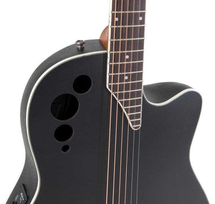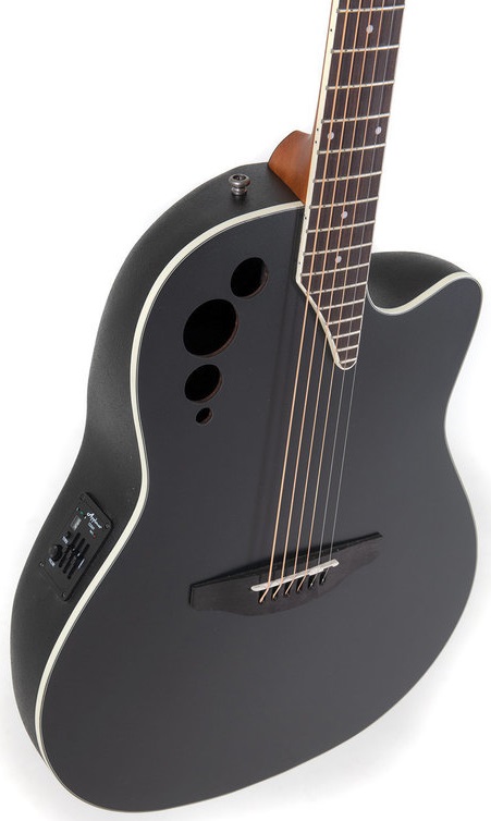 Elektroakustická gitara Rad Applause predstavuje cenovo dostupnejšie akustické gitary s dizajnovými prvkami nástrojov Ovation. Predná doska AE44II Mid Cutaway Black Satin je vyrobená z laminovaného smrekového dreva. Rezonanciu vrchnej dosky umocňuje umiestnenie a tvar ozvučných otvorov a redukované rebrovanie prednej dosky typu X. Zvyšok tela tvorí klenutý korpus Mid Depth vyrobený z hi-tech materiálu Lyrachord, ktorý nástroju poskytuje dostatočne teplý tón a potrebný komfort pre hudobníkov. K nato krku je