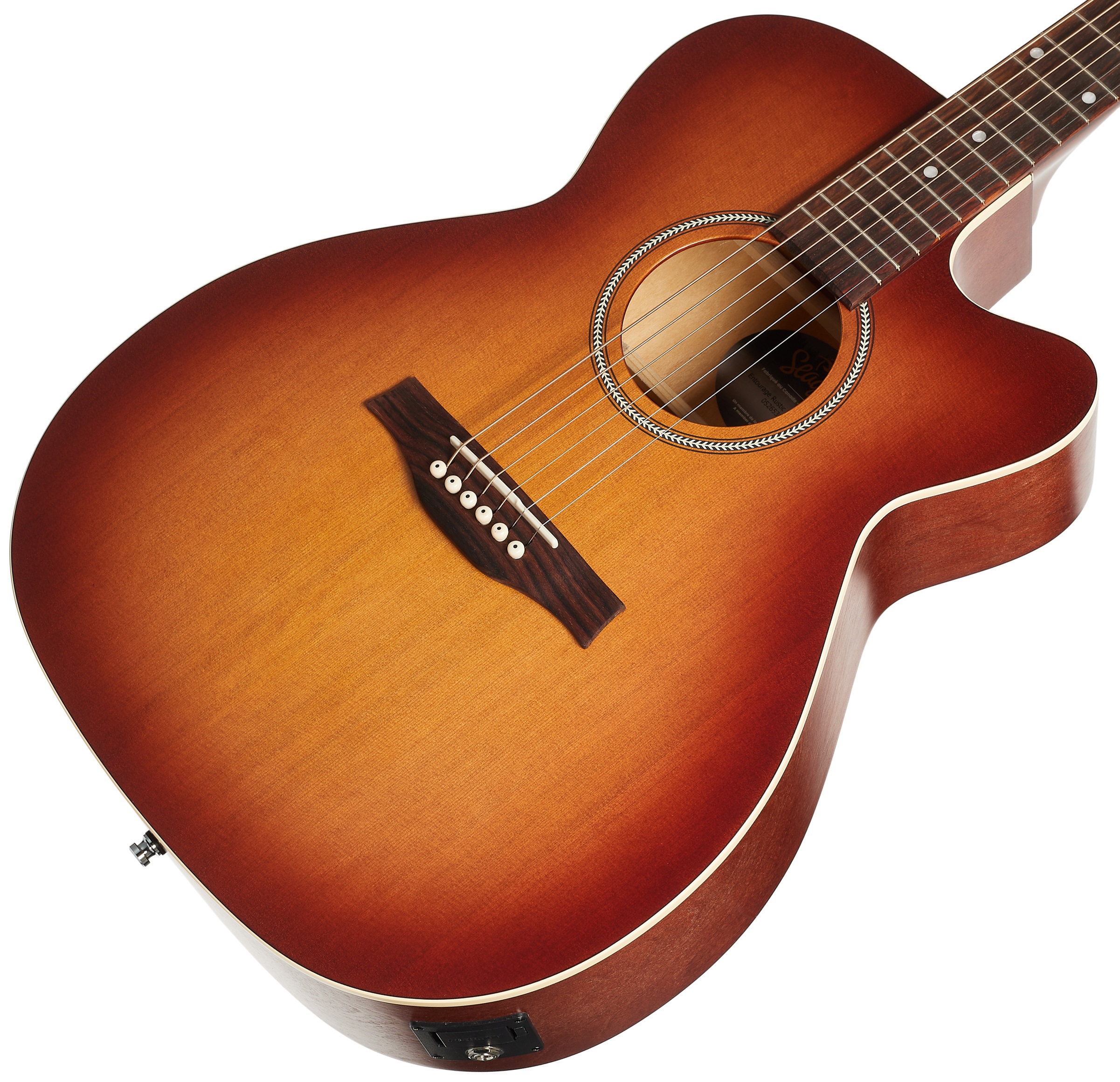 Elektroakustická gitara Akustické gitary kanadskej značky Seagull ponúkajú dobré herné a zvukové vlastnosti za prijateľnú cenu. Sú k dispozícii v čisto akustických verziách a s aktívnou elektronikou. SEAGULL Entourage Rustic Burst CH CW EQ je elektroakustická gitara s telom Concert Hall, ktorá sa nachádza niekde medzi malými Parlors a väčšími Dreadnought. Predná strana gitary je vyrobená z masívneho cédru, zatiaľ čo zadná strana a luby sú z troch vrstiev preglejky, čo dáva nástroju tonálny charakter, ktorý