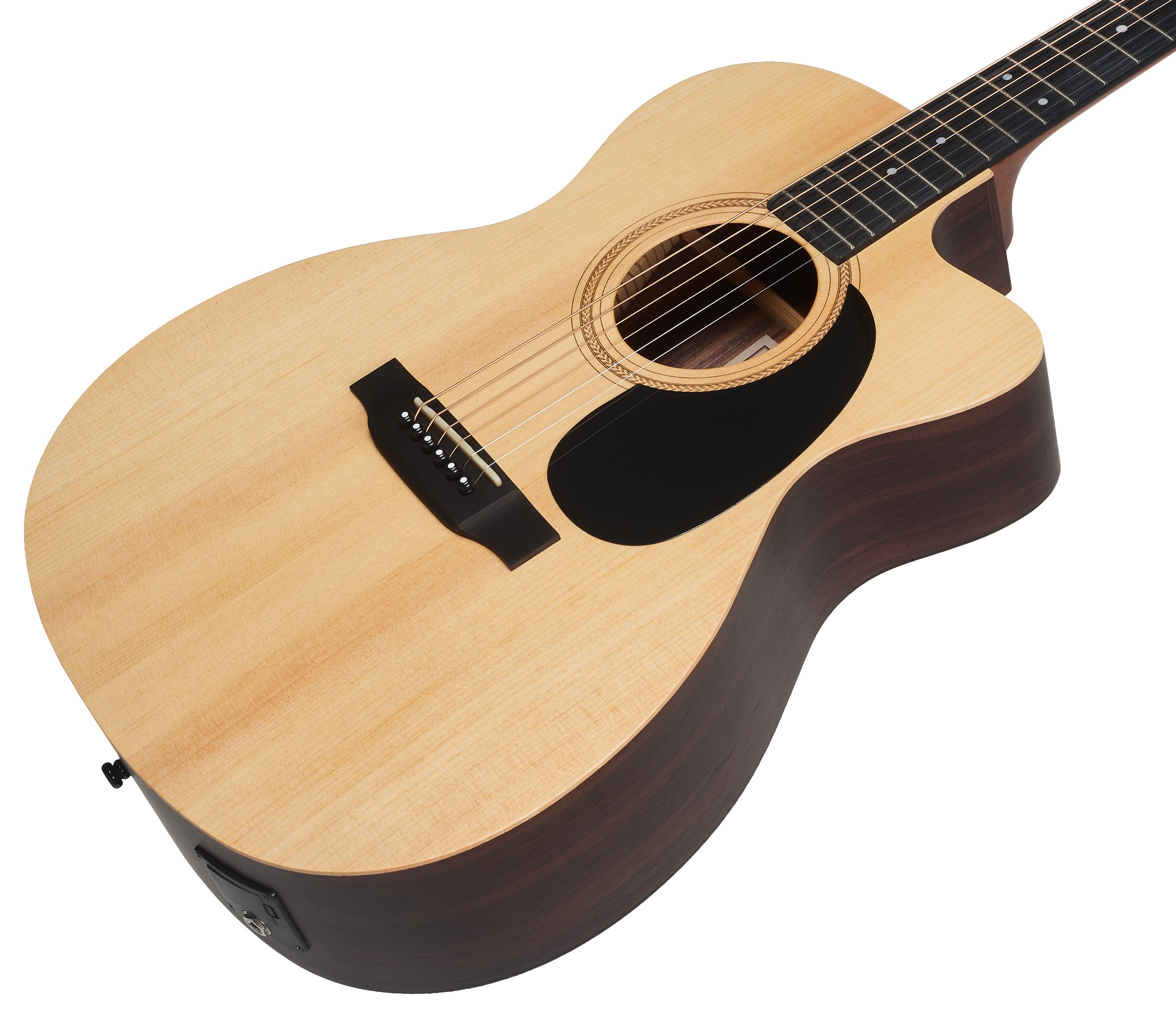 Elektroakustická gitara Sigma 000TCE je polomasívna elektroakustická gitara v tvare 000. Je ideálnou voľbou pre hráčov používajúcich prstovú techniku, ale ľahko si poradí aj s trsátkom. Menšie rozmery "trojkrídlovej" gitary (v porovnaní s gitarami typu Dreadnought) zaručujú dobrú hrateľnosť a pohodlie pri hre aj pre hráčov menšej postavy alebo konštrukcie. Predná doska nástroja je vyrobená z masívneho smreka Sitka, zatiaľ čo zadná doska a luby sú z preglejky, ktorá dopĺňa čistotu a priezračnosť masívnej smr