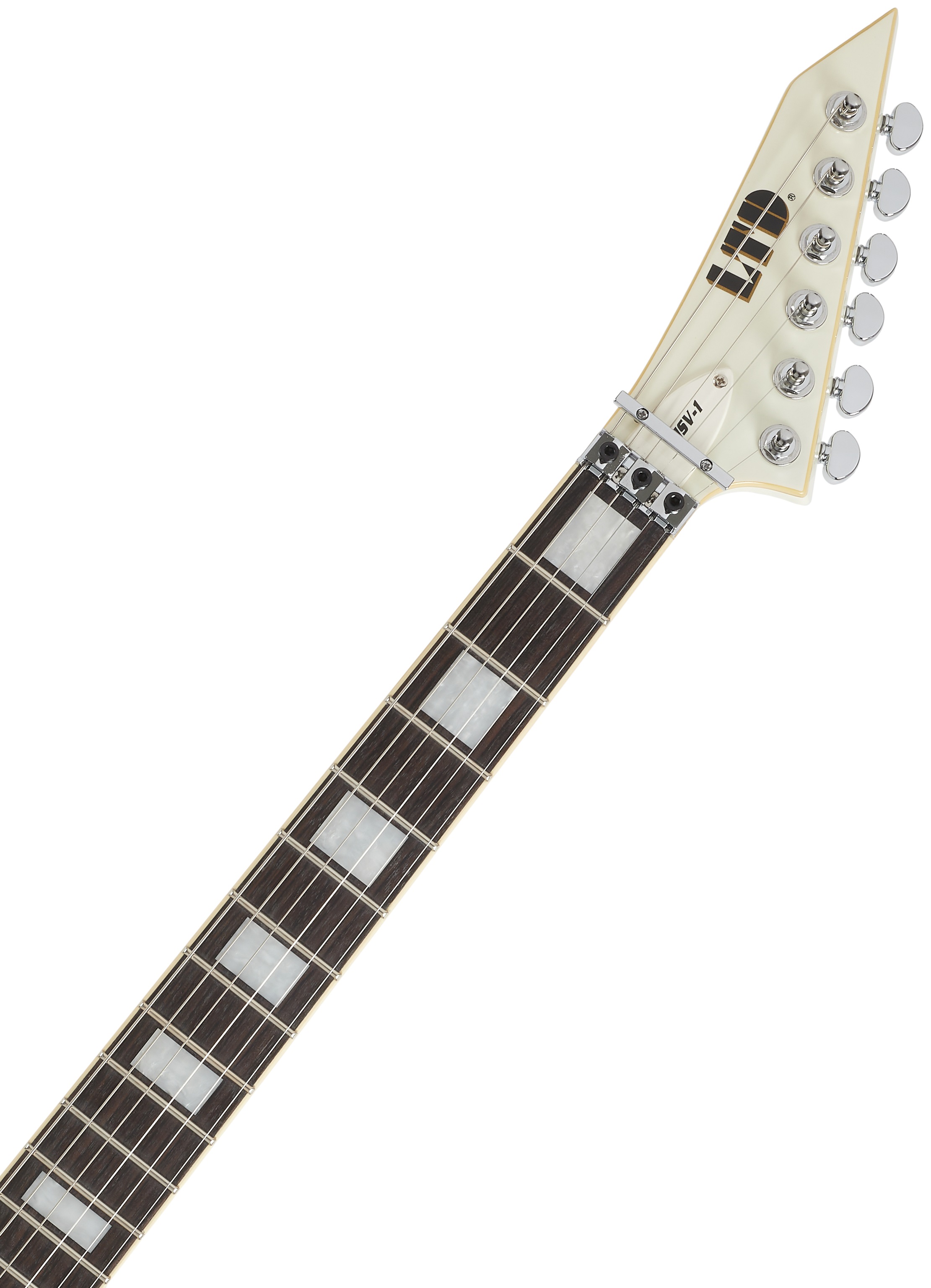 Elektrická gitara Elektrická gitara MSV-1 OLYMPIC WHITE je signature model gitaristu Mikea Schleibauma z americkej metalovej kapely Darkest Hour. Konštrukcia tela gitary pozostáva z mahagónových krídel, javorovej vrchnej dosky a priechodného krku z troch kusov mahagónu. Hmatník z ebenového makasaru rozdeľuje dvadsaťštyri pražcov Extra Jumbo z nehrdzavejúcej ocele. Orientáciu na povrchu hmatníka uľahčujú polohové bloky. Aktívny humbucker EMG JH (signature humbucker Jamesa Hedfielda z Metallicy) dodáva zvuku