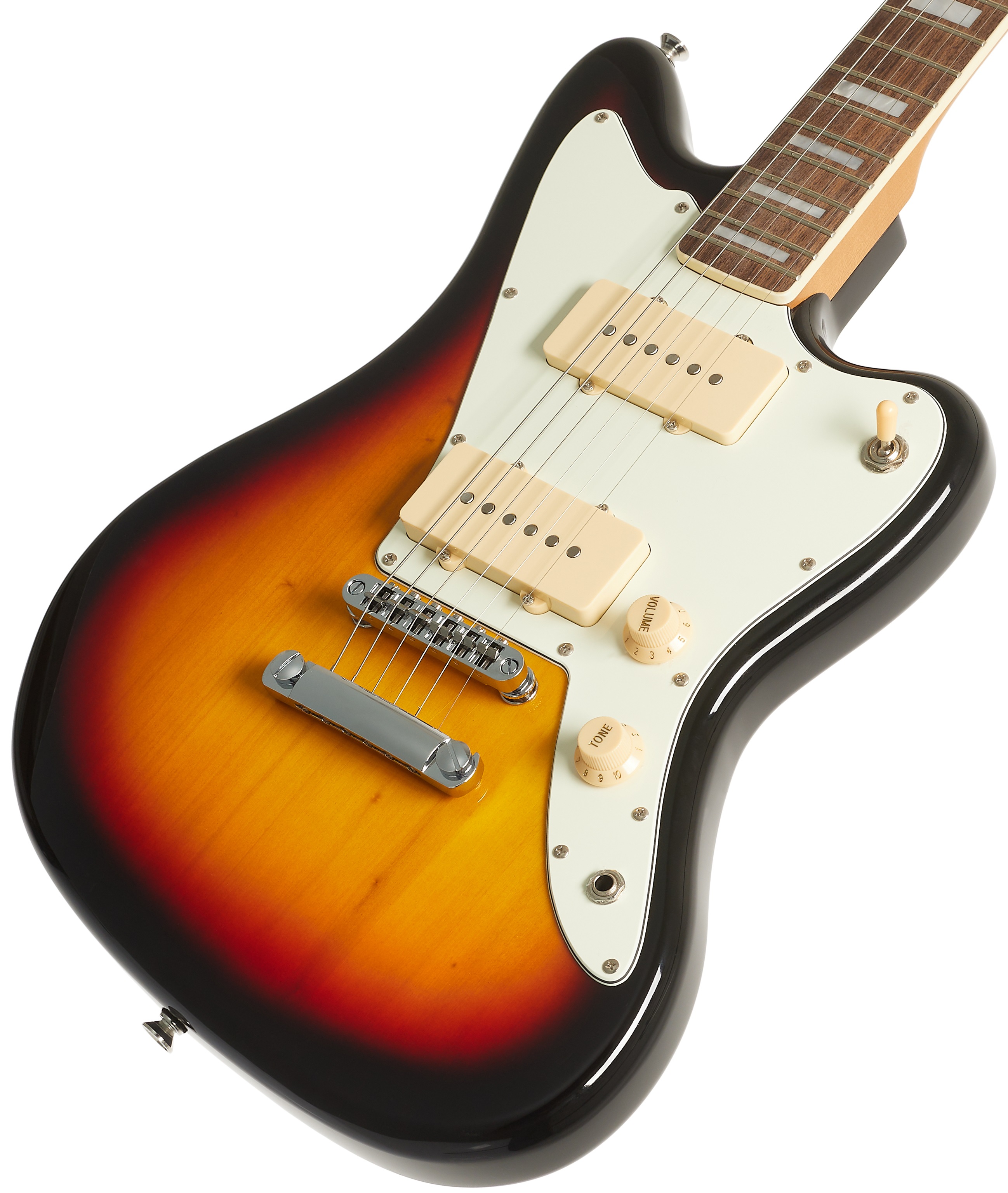 Elektrická gitara Elektrická gitara Blond JA-2 SB zo série Standard s klasickým ofsetovým tvarom tela je ideálnou voľbou pre začínajúcich rockerov a rockerky. Telo gitary je vyrobené z lipového dreva. Javorový krk je prilepený k figúrovanému javorovému hmatníku s dvadsaťjeden pražcami. Vďaka tepelnej úprave krku (karamelizovaný javor) je drevo stabilnejšie a zároveň získava príjemnú zlatistú farbu nástrojov, na ktorých sa hrá roky. O ozvučenie gitary sa starajú dva single-coil snímače s magnetmi Alnico V. C