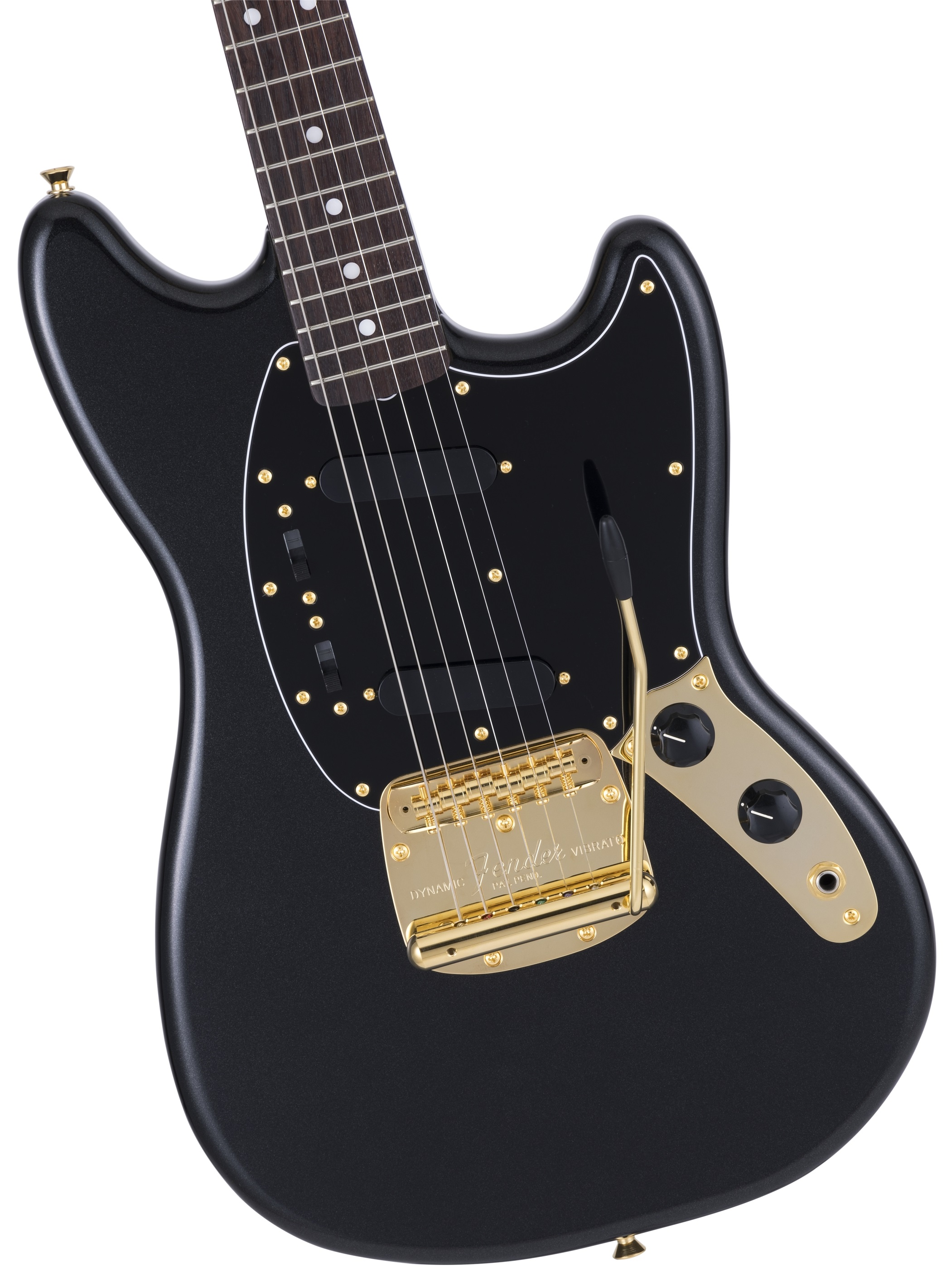Elektrická gitara Fender Made in Japan Traditional II 60s Mustang RW BP je limitovaná edícia elektrickej gitary "Made in Japan", ktorá ponúka spojenie amerického dizajnu Fender a japonského remeselného spracovania. Telo gitary z lipového dreva je pokryté lesklým polyesterovým lakom a povrchovo upravené farbou Black Pearl. Javorový krk s profilom "U" je prilepený k palisandrovému hmatníku osadenému dvadsiatimi dvoma pražcami veľkosti vintage. Orientáciu na h