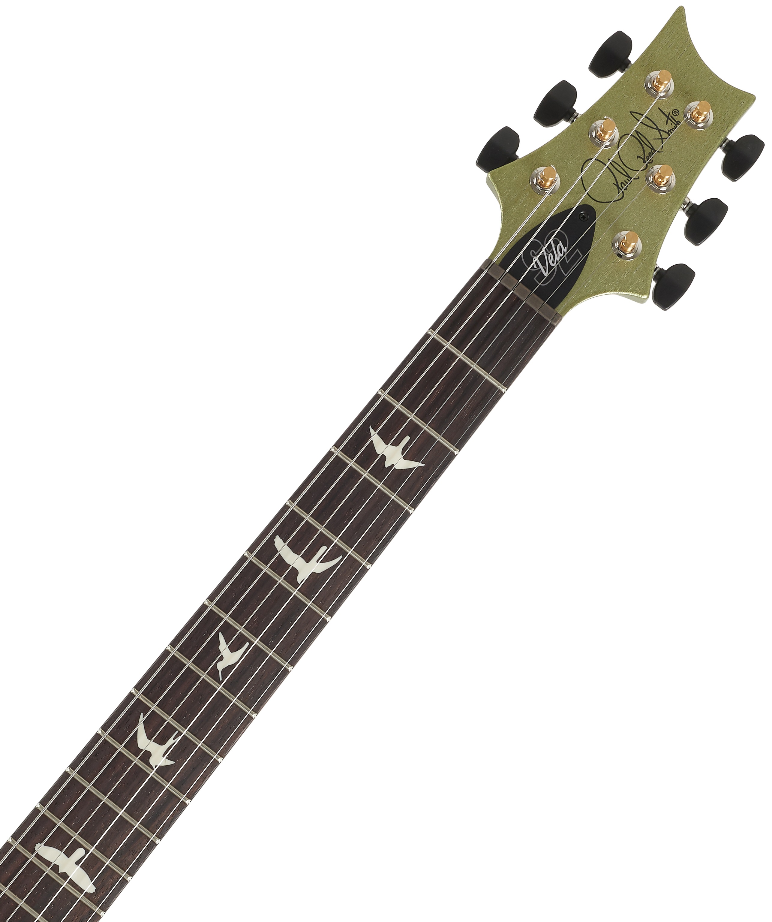 Elektrická gitara Elektrické gitary PRS S2 sa vyrábajú v Stevensville v USA. Model S2 Vela je prvým nástrojom od PRS s ofsetovým tvarom tela a určite osloví hudobníkov, ktorí preferujú zvuk a hrateľnosť gitár PRS a zároveň ocenia elegantný vintage dizajn a pocit z hry. Novinkou série S2 pre rok 2024 sú snímače a elektronika vyrobené v USA. Mahagónové telo gitary S2 Vela Satin Mavis Mint Metallic je pokryté saténovým nitro lakom. K mahagónovému krku s profilom Pattern Regular je prilepený palisandrový hmatní