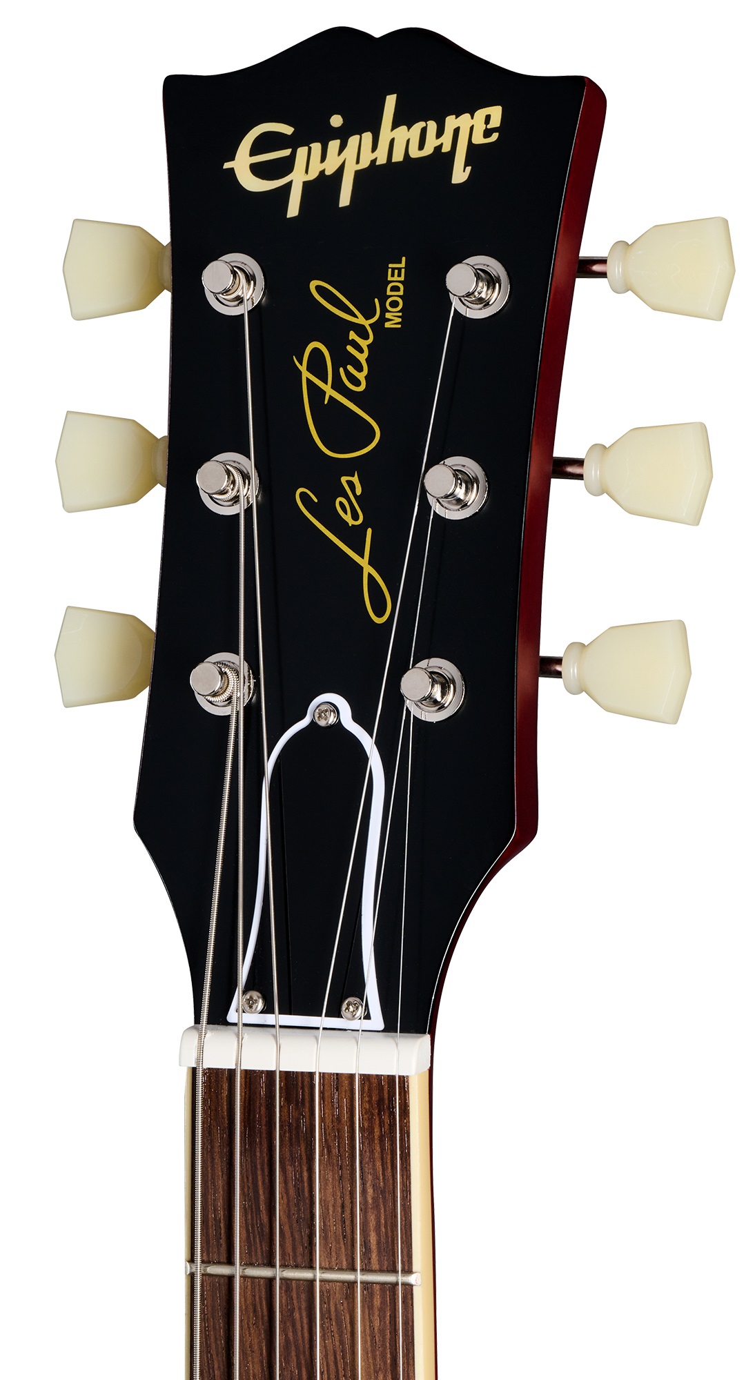 Elektrická gitara Elektrické gitary Epiphone sú už desaťročia cenovo dostupnejšou alternatívou originálov Gibson. A to je aj prípad modelu 1959 Les Paul Standard Factory Burst, ktorý vznikol v spolupráci s Gibson Custom Shop. Mahagónové telo gitary zdobí veľkolepá javorová dyha kvality AAA a povrchová úprava Tobacco Burst. Špeciálna povrchová úprava VOS (Vintage Original Specs) dodáva gitare autentický vzhľad a pocit originálov. K jednodielnemu mahagónovému krku s príjemným profilom Medium C je prilepený fi