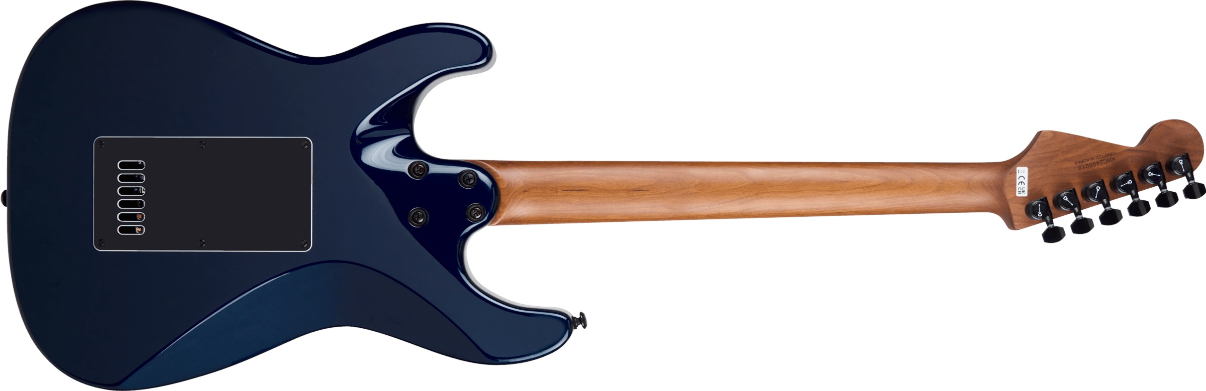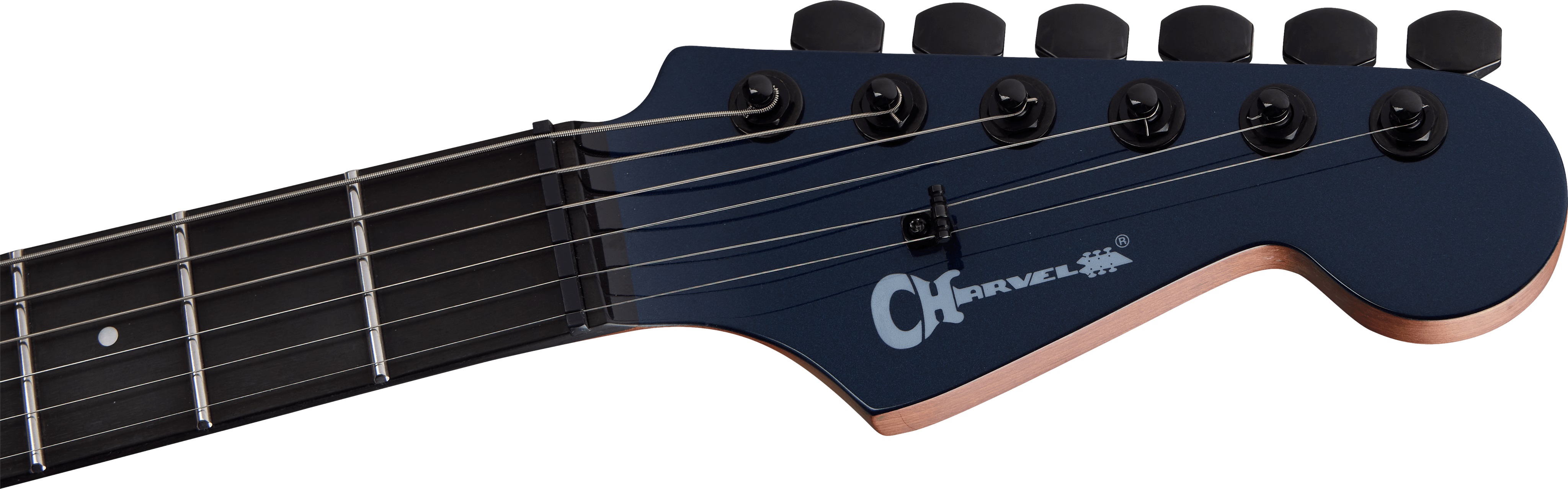 Elektrická gitara Elektrické gitary Charvel So-Cal (Southern California) sú superstraty s ergonomicky tvarovaným telom, špecifickým tvarom kobylky a tremola Floyd Rose určené pre rýchlych hráčov. Telo modelu Pro-Mod Plus SC1 MBL je vyrobené z jelše. Karamelizovaný javorový krk s grafitovou výstuhou je priskrutkovaný k ebenovému hmatníku osadenému dvadsiatimi dvoma jumbo pražcami z nehrdzavejúcej ocele. Jeho rádius sa smerom k telu splošťuje – umožňuje tak pohodlné riffovanie pri nultom pražci, ako aj pohodl