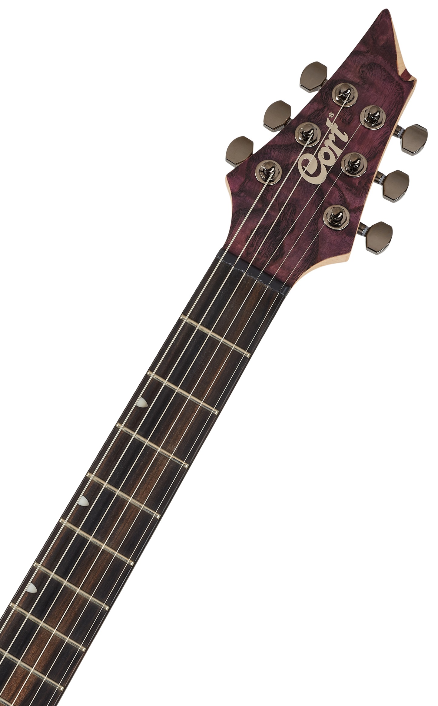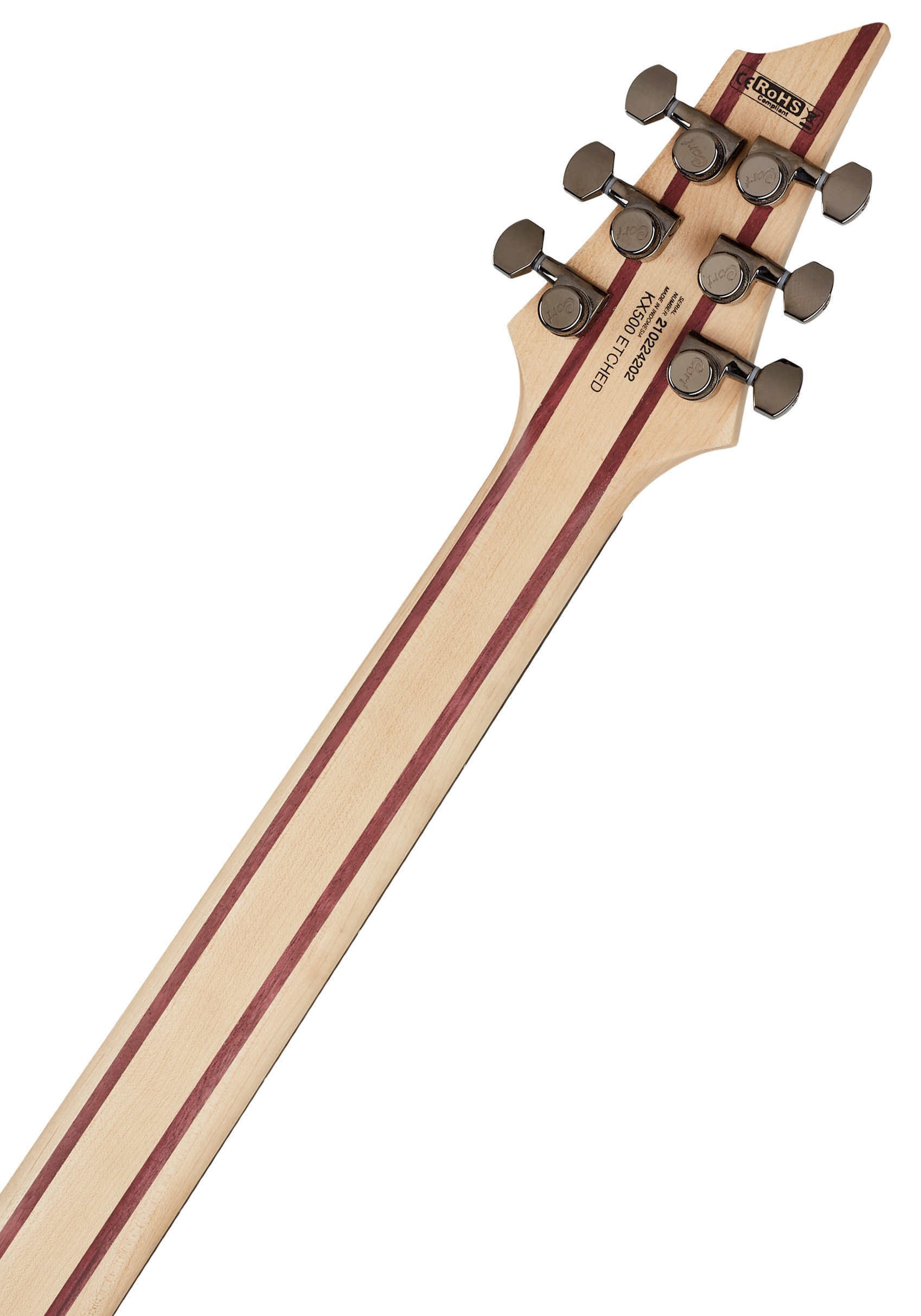Elektrická gitara Séria KX od spoločnosti Cort je elektrická gitara s moderným dizajnom. Najmä šesťstrunová gitara KX500 Etched je vďaka svojej dostupnej cene jasnou voľbou pre hráčov súčasných štýlov – od djentu až po moderný prog rock. Gitara už na prvý pohľad zaujme pieskovanou kresbou vrchnej dosky z jaseňa a povrchovou úpravou Etched Deep Violet. K mahagónovému telu je priskrutkovaný krk zložený z piatich kusov javorového a purpurového srdca. Hmatník z ebenového dreva Macassar, osadený dvadsiatimi štyr