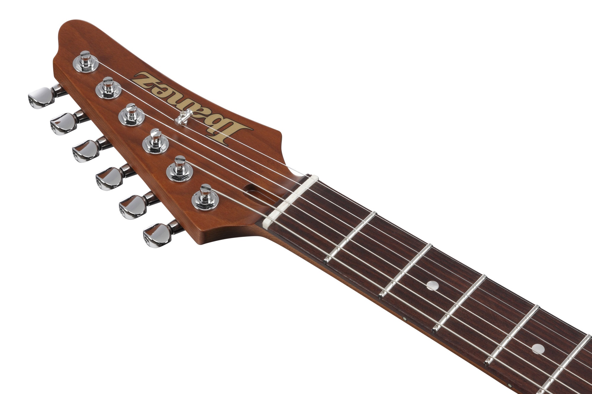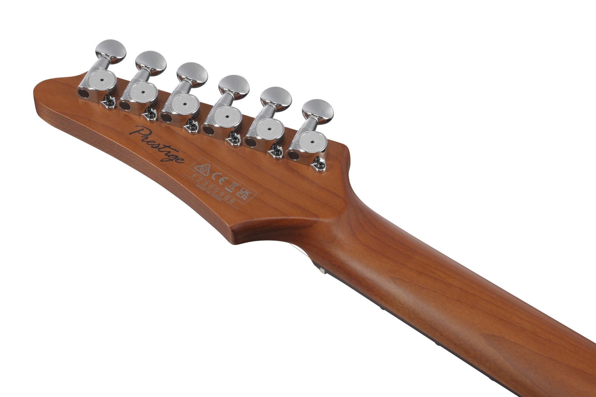 Elektrická gitara Elektrické gitary zo série AZ predstavujú príjemné oživenie katalógu Ibanez. Ponúka guľatejší krk a vyvážené asymetrické telo modelov Super ST. Ergonomicky tvarované telo elektrickej gitary AZ2204NW-GRM je vyrobené z jelše. K javorovému krku je prilepený palisandrový hmatník osadený dvadsiatimi dvoma pražcami z nehrdzavejúcej ocele veľkosti jumbo. Javorový krk bol pred montážou tepelne upravený (úprava S-TECH), čo zlepšuje jeho stabilitu, odolnosť voči vode a teplotným výkyvom a zároveň do