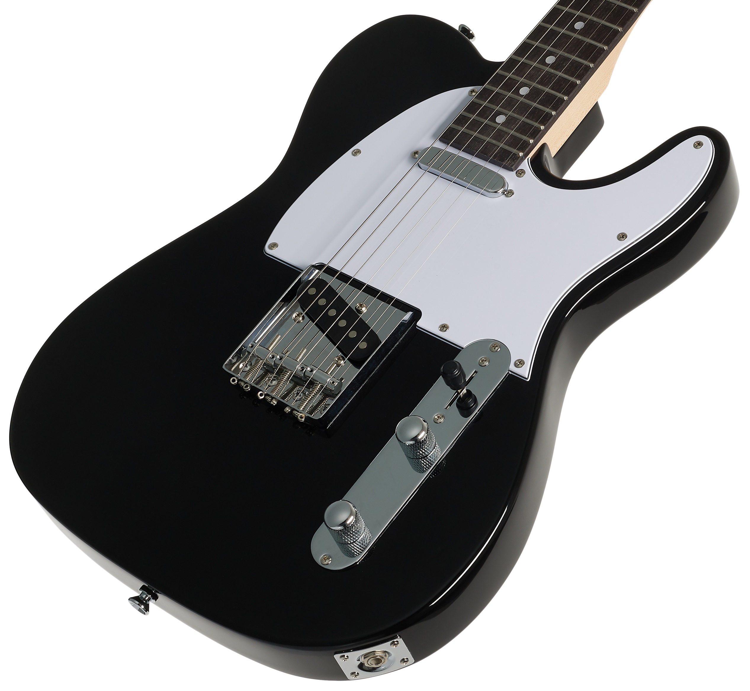Elektrická gitara Elektrická gitara Blond TE-1 BK je ideálnou voľbou pre začínajúcich rockerov a rockerky. Ide o tradičný nástroj v tvare písmena T so všetkými prvkami, ktoré si s týmto typom gitary spájate – od snímačov typu T s jednou cievkou až po masívny krk a pickguard. Telo gitary je vyrobené z topoľa. K javorovému krku s pekným profilom Modern C je prilepený hmatník Roseacer, ktorý je z tepelne upraveného javora v palisandrovej povrchovej úprave. Dva snímače typu single-coil dodávajú gitare "twang" a