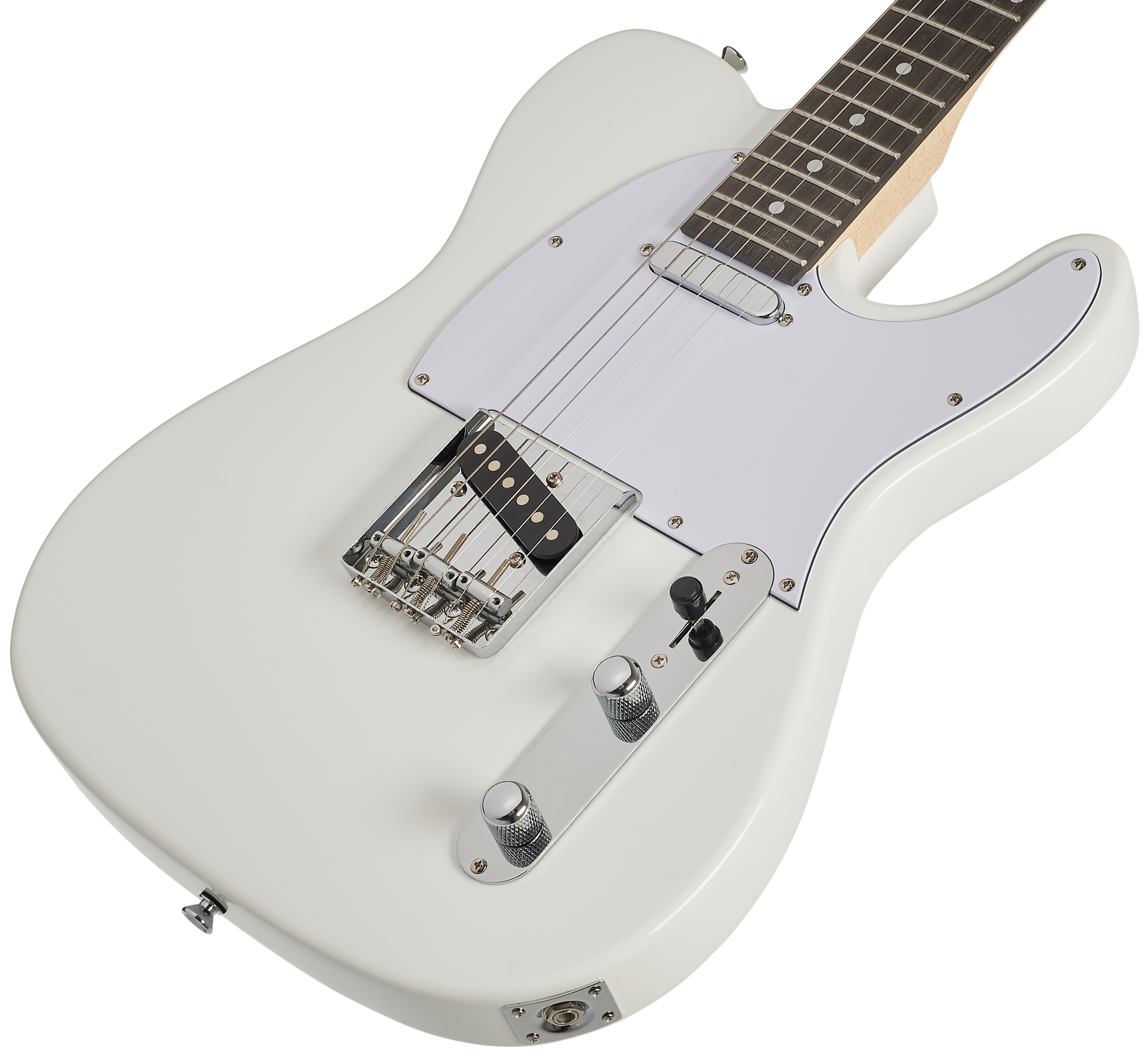 Elektrická gitara Elektrická gitara Blond TE-1 WH je ideálnou voľbou pre začínajúcich rockerov a rockerky. Ide o tradičný nástroj v tvare písmena T so všetkými prvkami, ktoré si s týmto typom gitary spájate – od snímačov typu T s jednou cievkou až po masívny krk a pickguard. Telo gitary je vyrobené z topoľa. K javorovému krku s pekným profilom Modern C je prilepený hmatník Roseacer, ktorý je z tepelne upraveného javora v palisandrovej povrchovej úprave. Dva snímače typu single-coil dodávajú gitare "twang" a